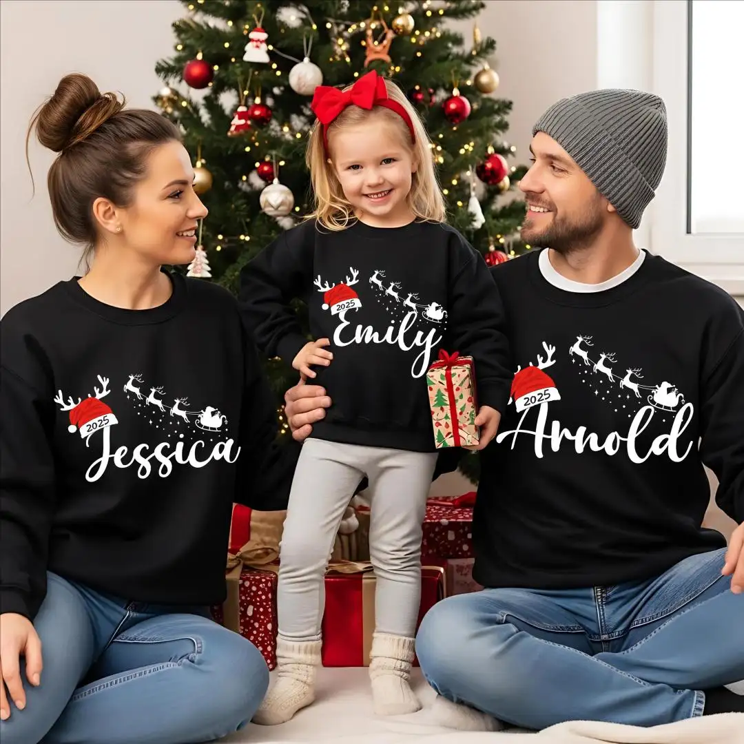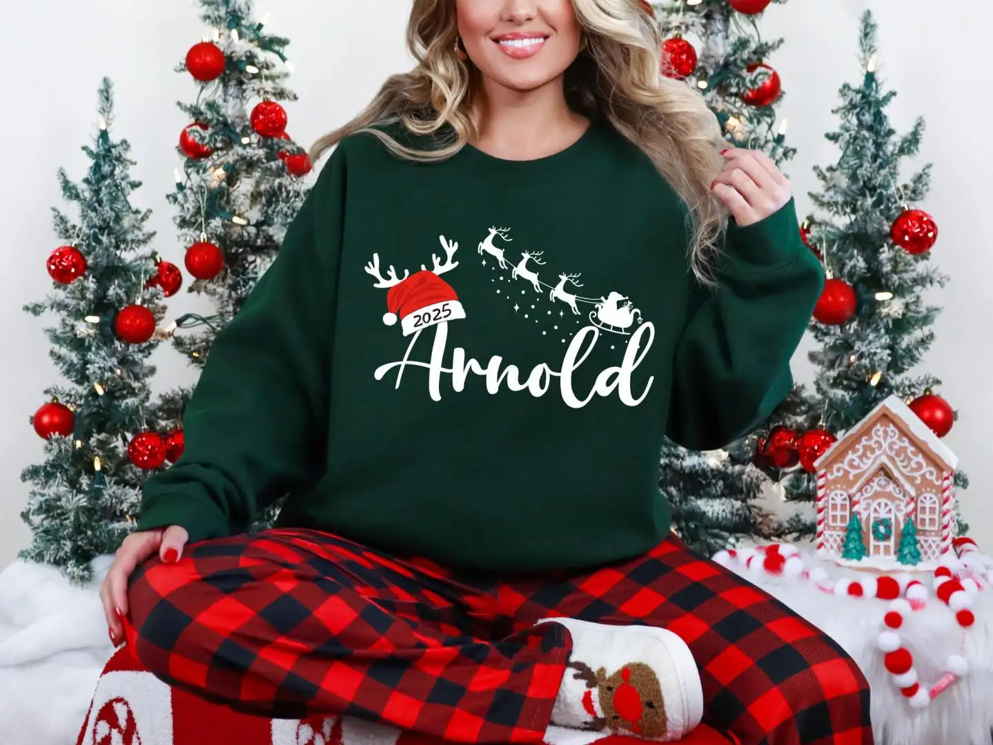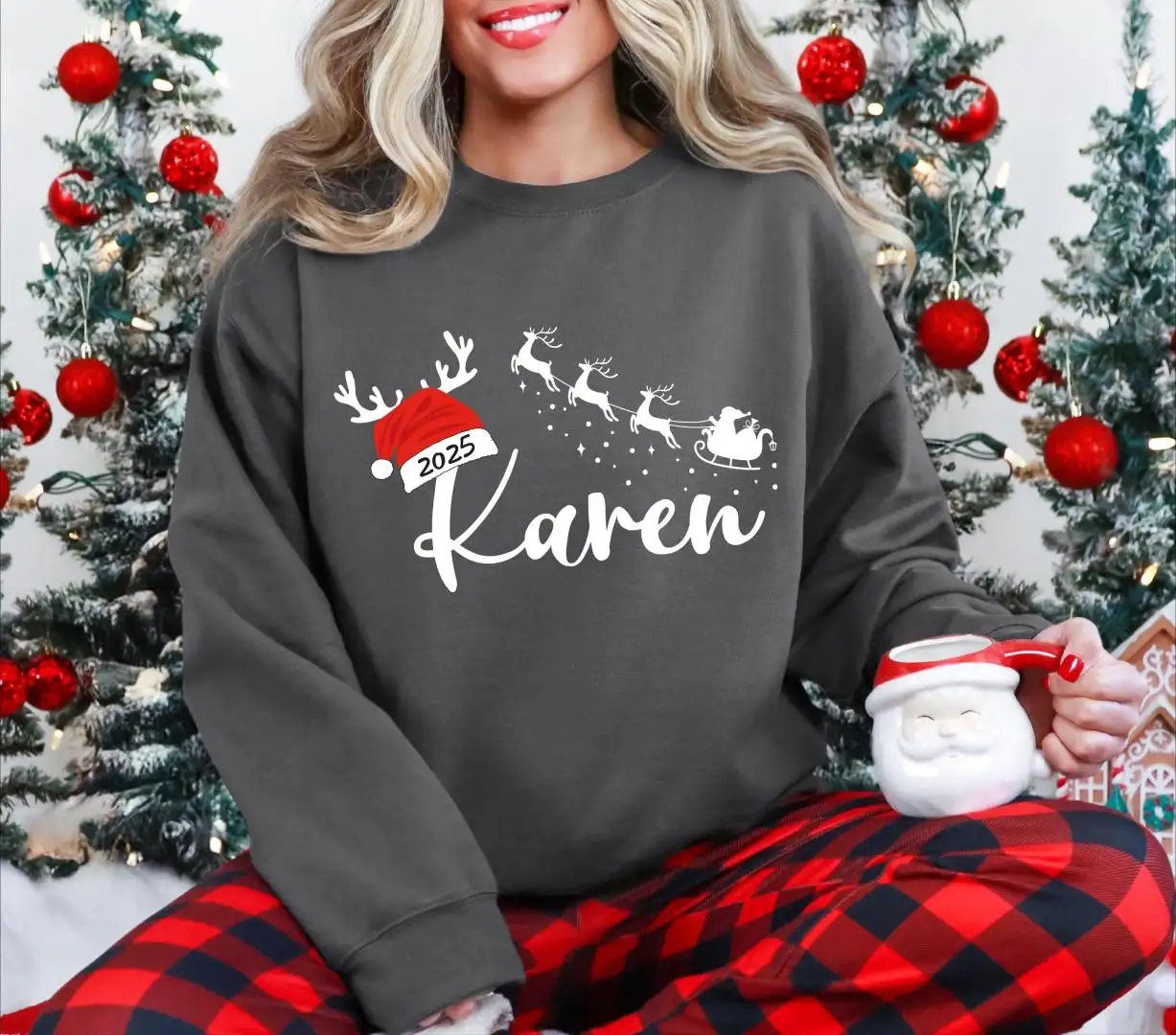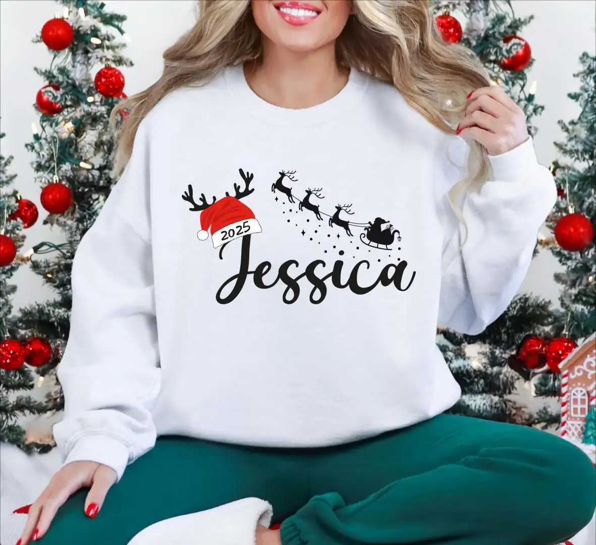 2025 Christmas Reindeer Custom Name Shirt, Xmas Reindeer, Merry Christmas Tee, Christmas Squad Sweater, Christmas Family Custom Sweatshirt