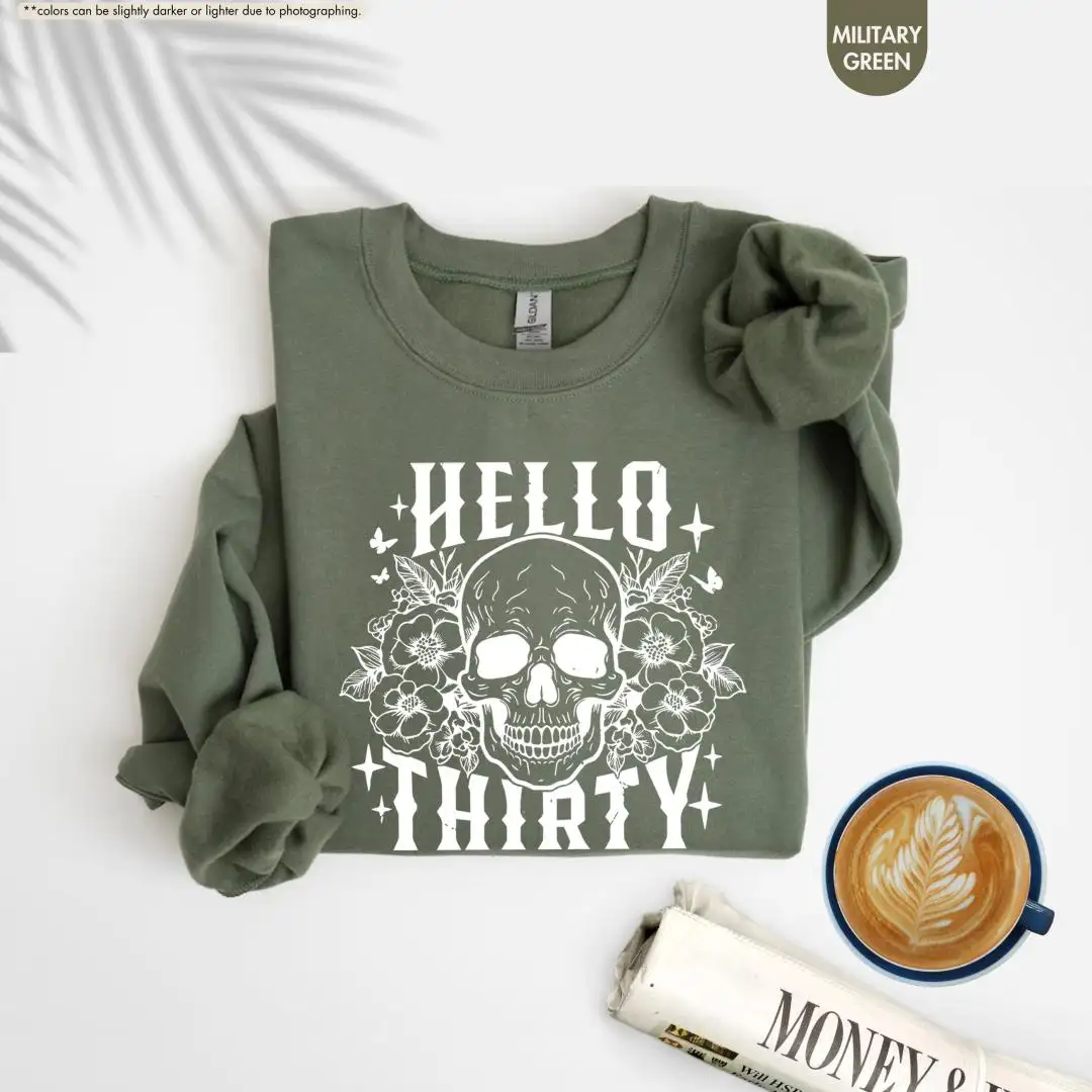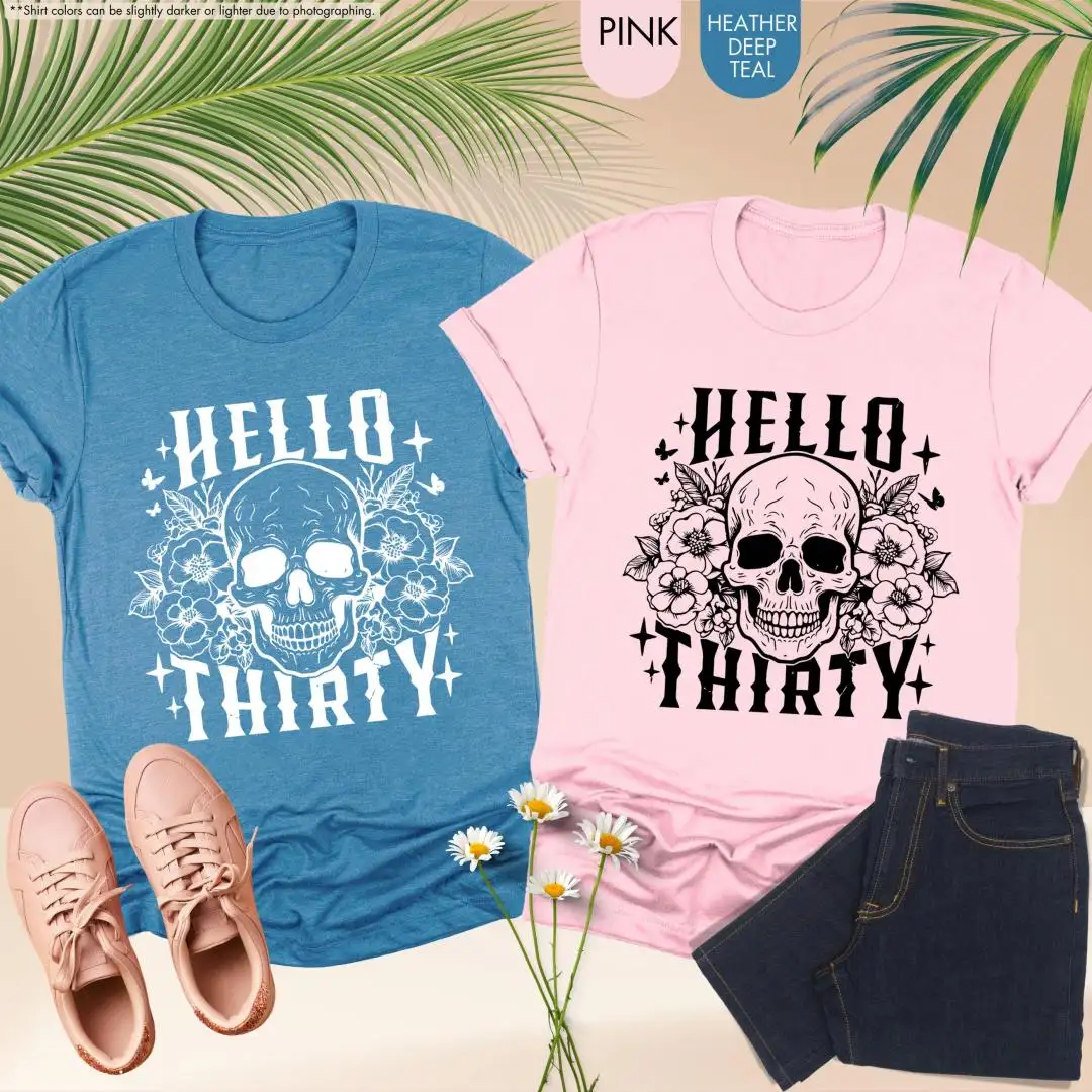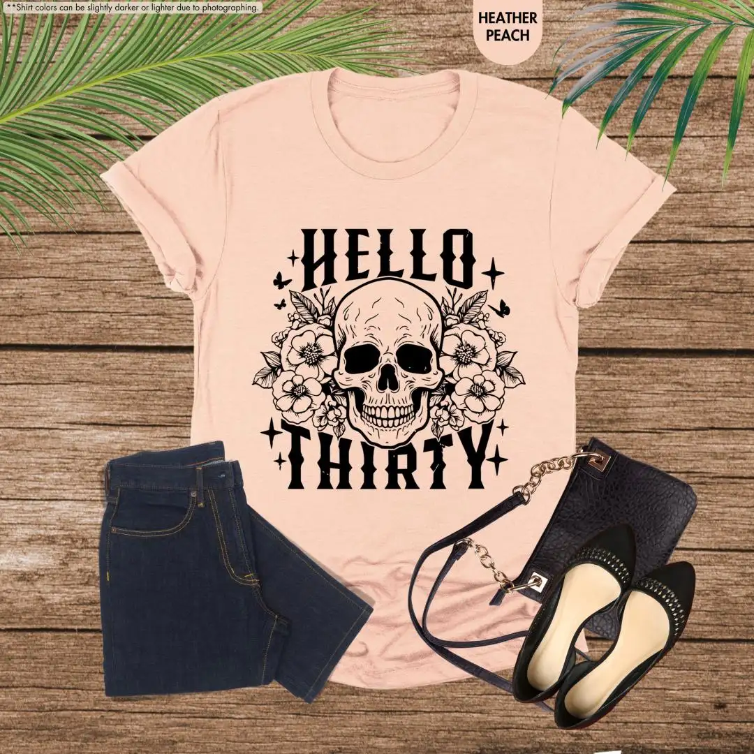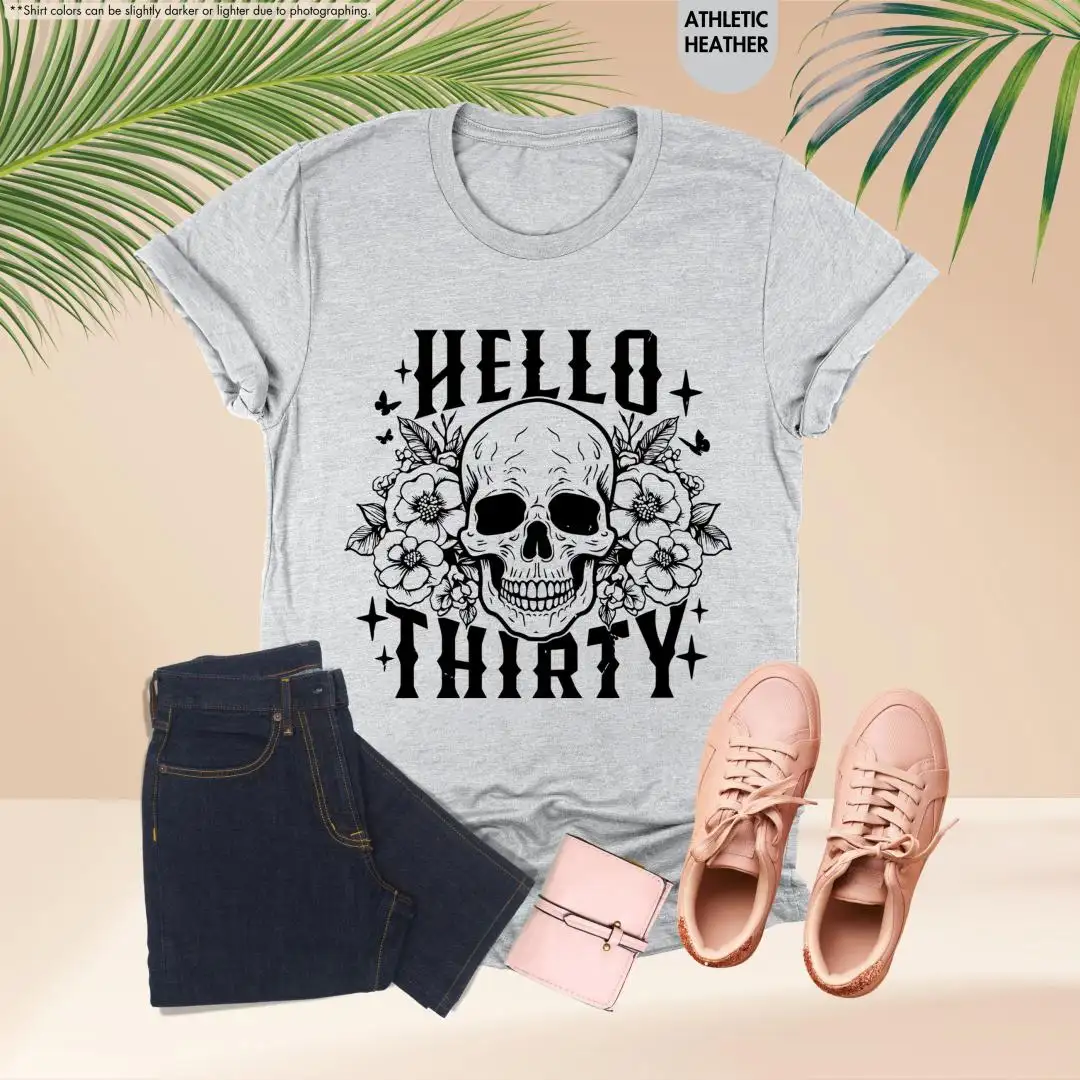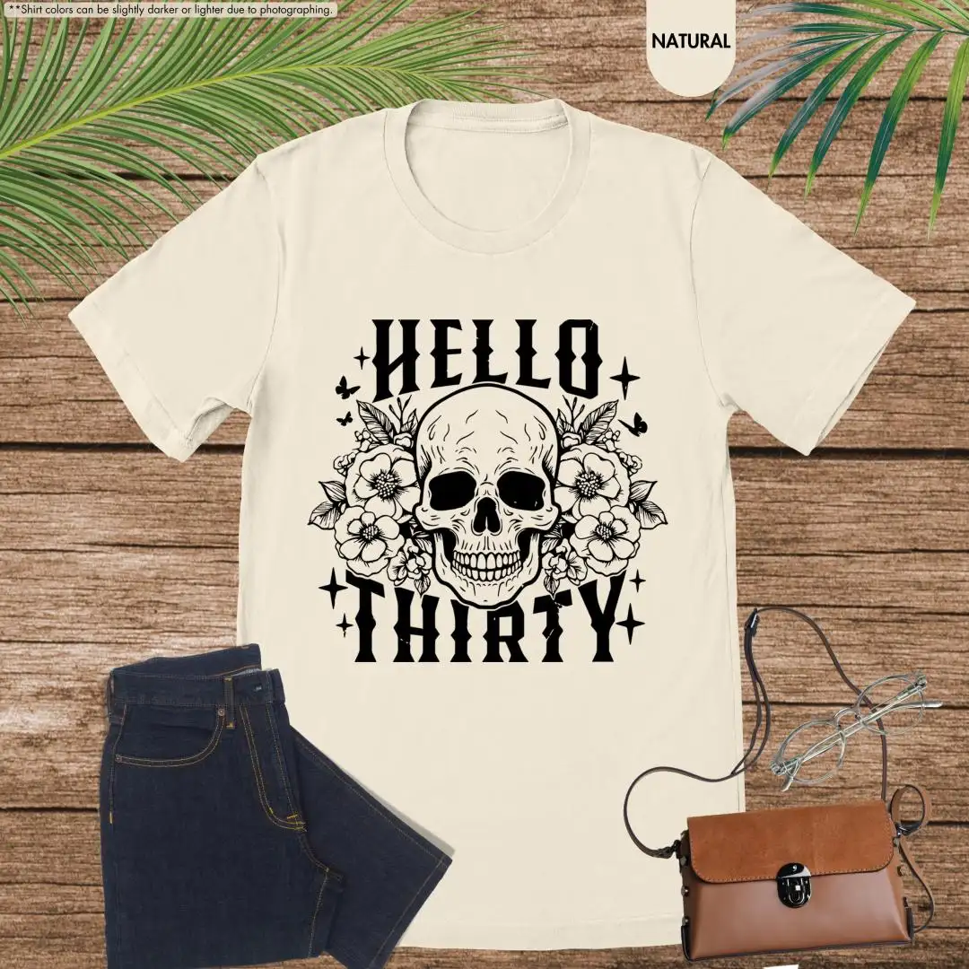 30th Birthday Shirt Floral Skull Womens Gift