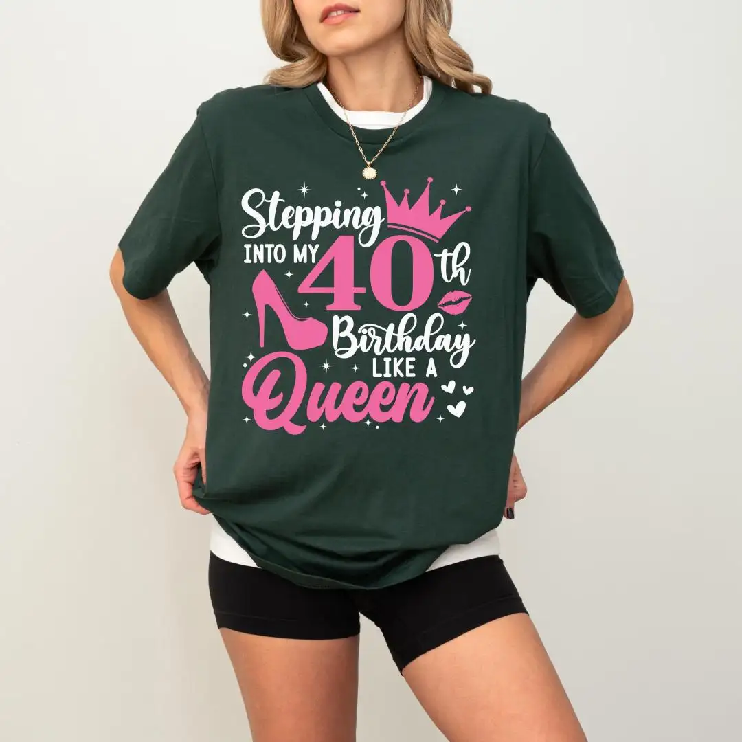 40th Birthday Shirt for Women | Stepping Into My 40s Queen