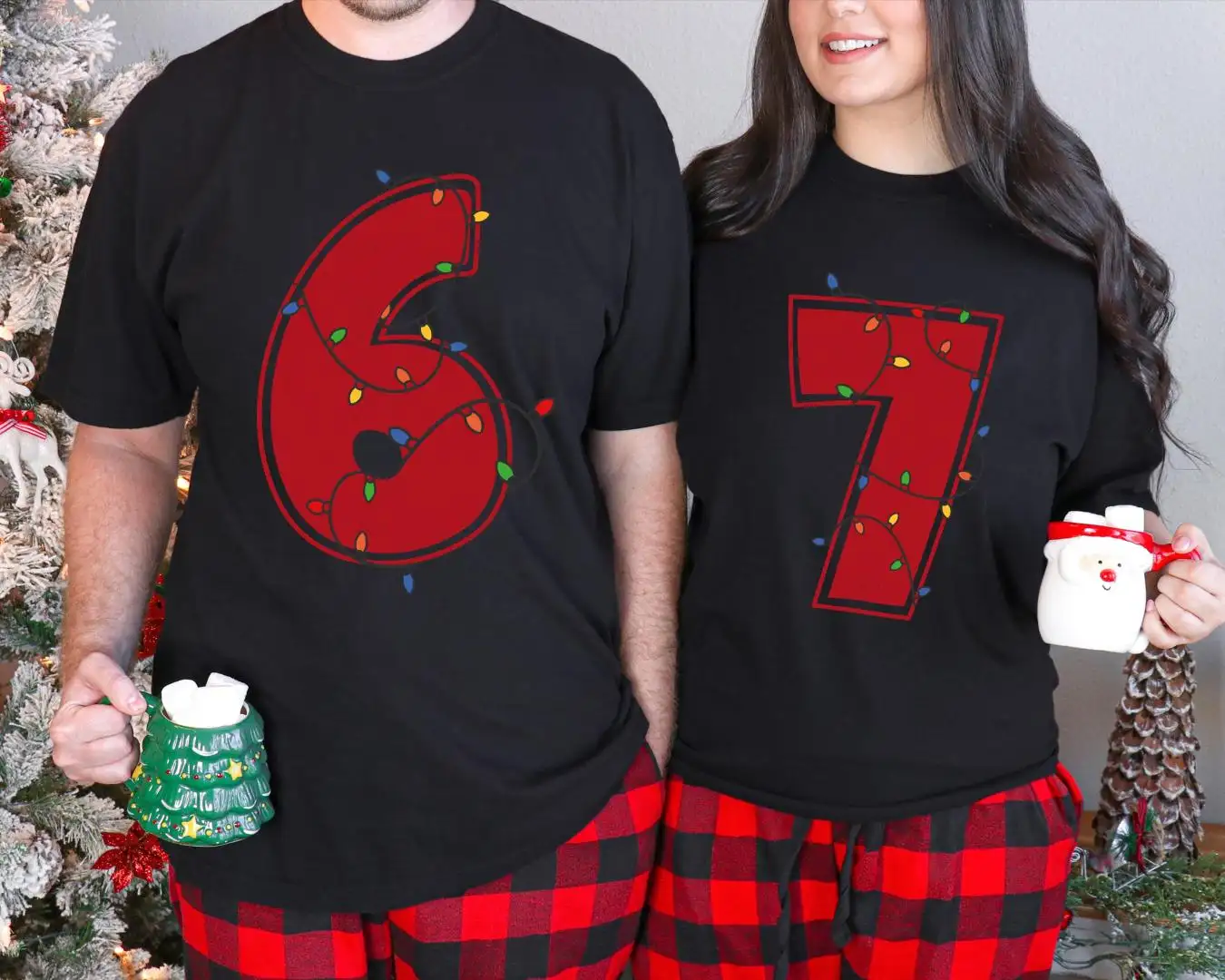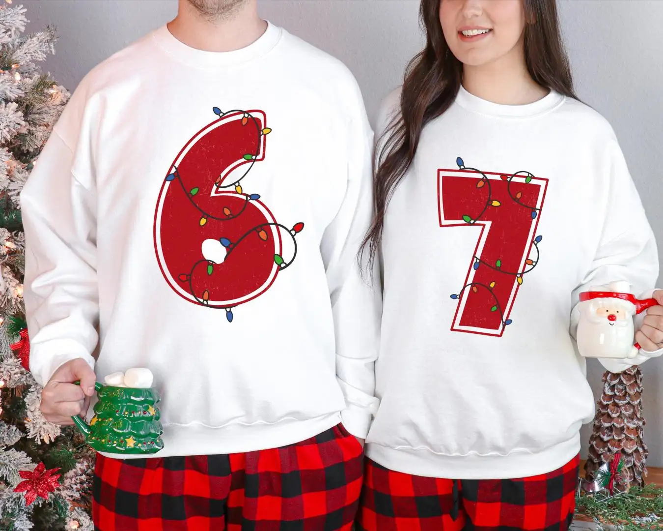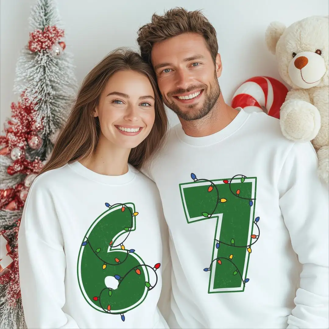 6 7 Christmas Lights Couple Shirt, Six Seven Meme Tee, Funny Christmas Meme Matching Sweater, Christmas Lights Sweatshirt, Merry Christmas