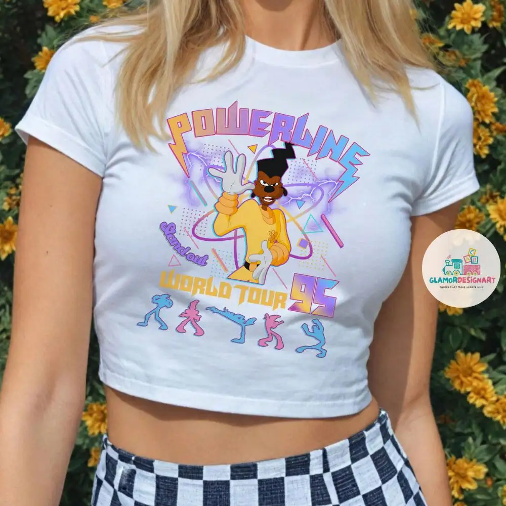 Review A Goofy Movie Disney Powerline Stand Out Tour 95 Baby Tee, Goofy Max Goof Roxanne Disney Girl Trip Croptop Women Shirt, Powerline World Tour