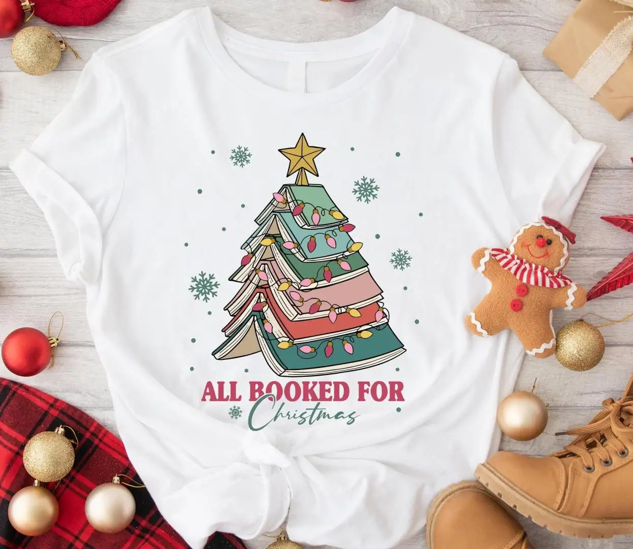 Review All Booked For Christmas Shirt, Christmas Lights Tee, Bookworm Xmas Shirt, Book Lover Christmas Gift, Book Christmas Tree Sweatshirt