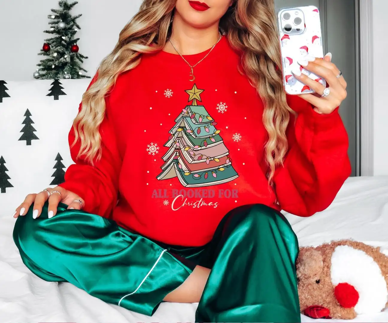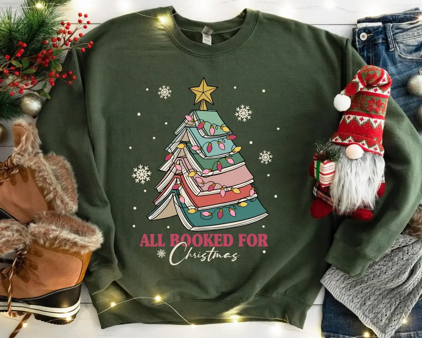 All Booked For Christmas Shirt, Christmas Lights Tee, Bookworm Xmas Shirt, Book Lover Christmas Gift, Book Christmas Tree Sweatshirt