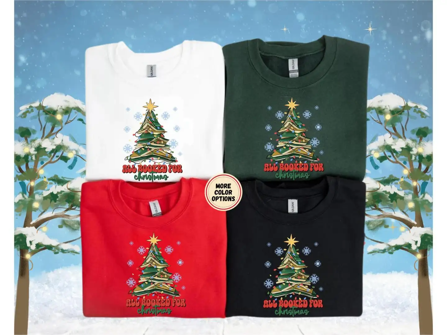 All Booked For Christmas Sweatshirt, Book Lover Hoodie, Bookworm Christmas Sweater, Christmas Teacher Gift, Christmas Book Tree Sweatshirt