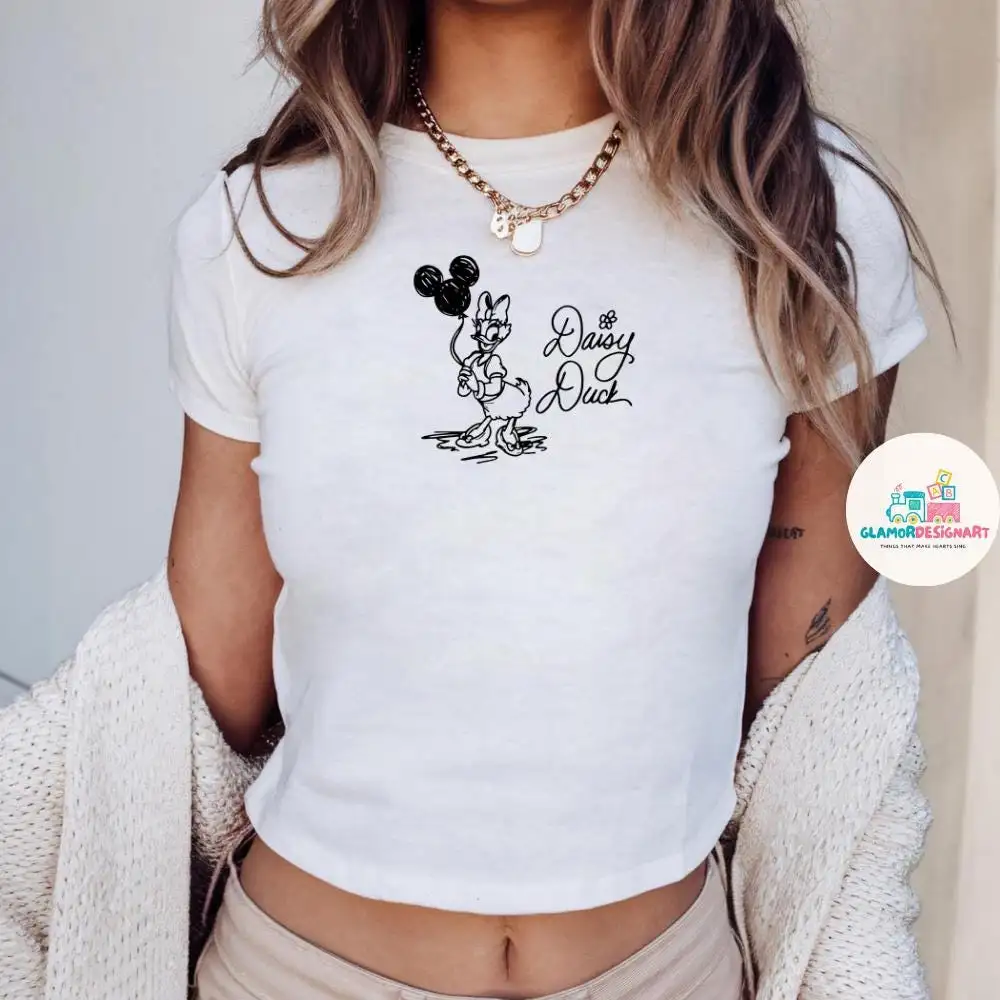 Review All character Disney signature Baby Tee Croptop shirt, Vintage Mickey Minnie Group matching shirt Women Baby Tee, Mickey & friends baby tee