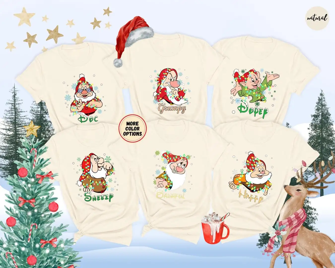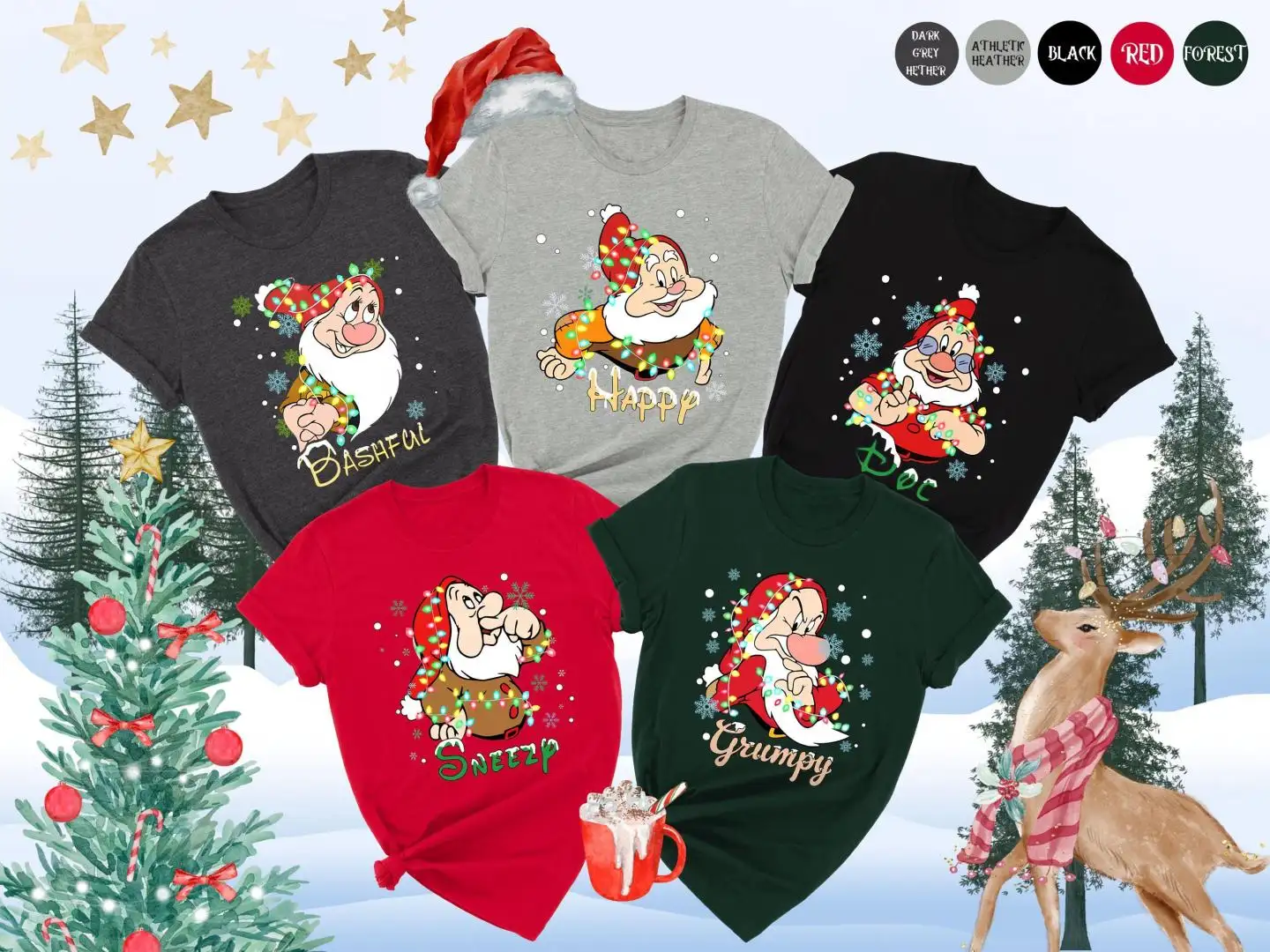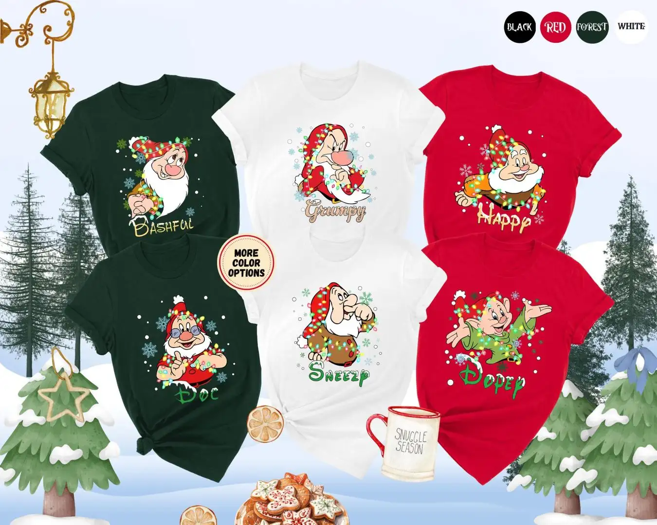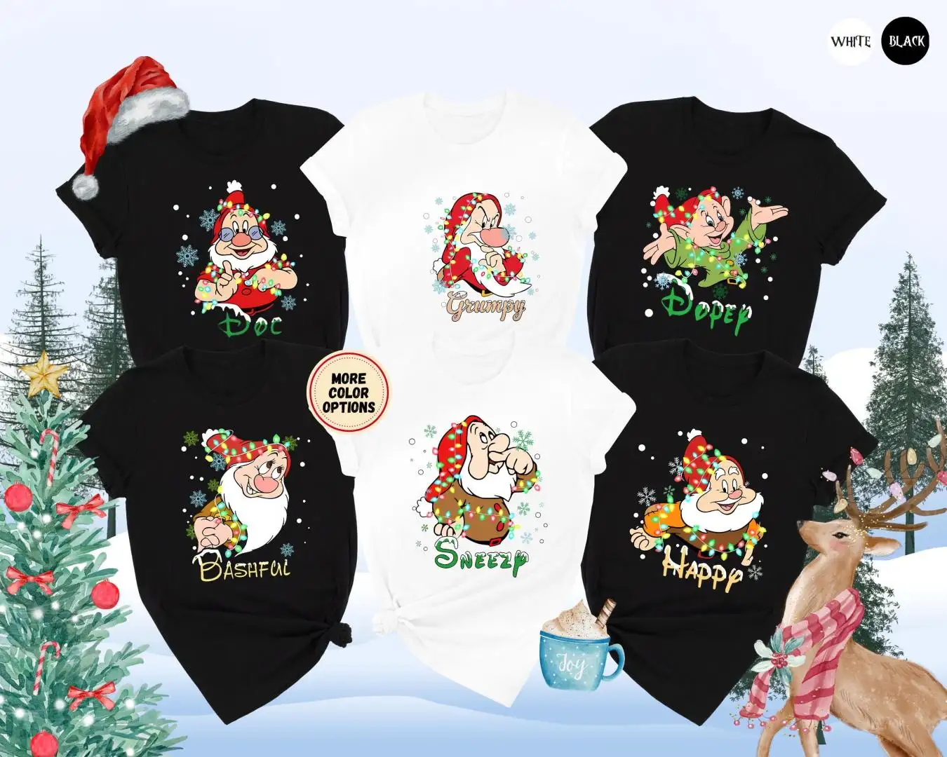 Review All Characters Snow White & Seven Dwarfs Christmas Shirts, WDW Disneyland Christmas Trip Shirts, Disney Family Group Matching Shirts