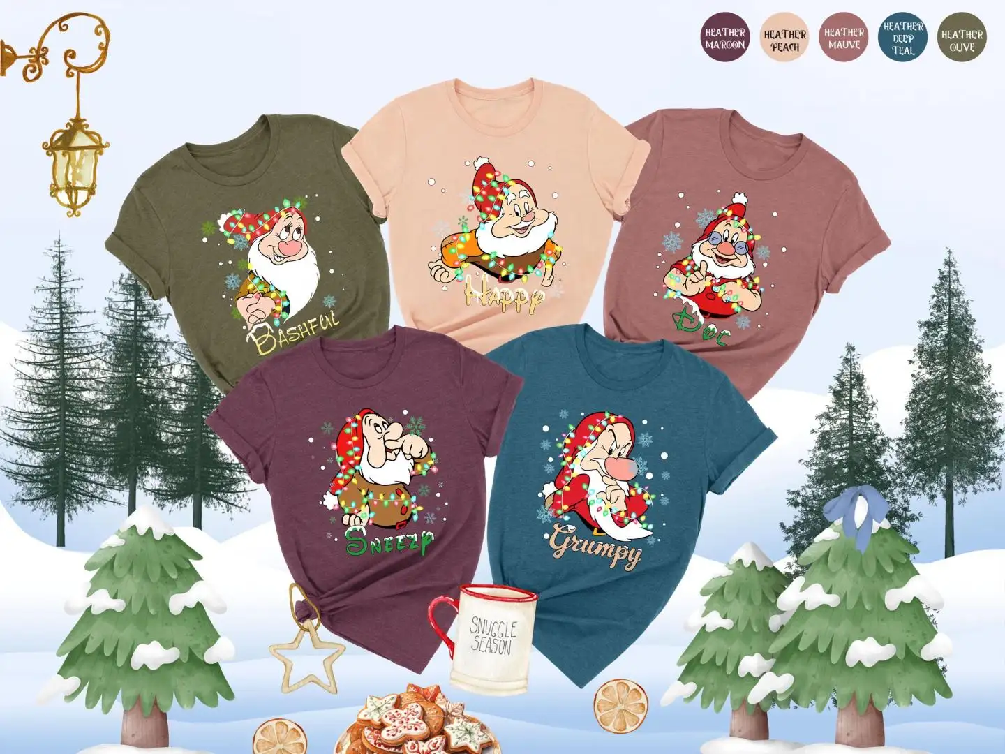 All Characters Snow White & Seven Dwarfs Christmas Shirts, WDW Disneyland Christmas Trip Shirts, Disney Family Group Matching Shirts