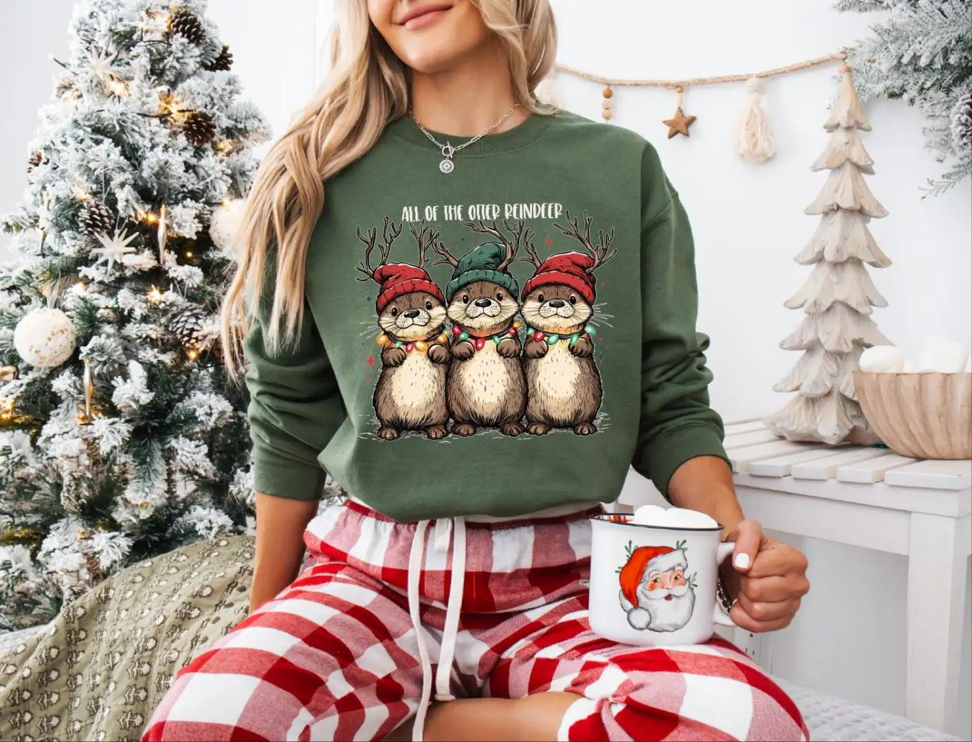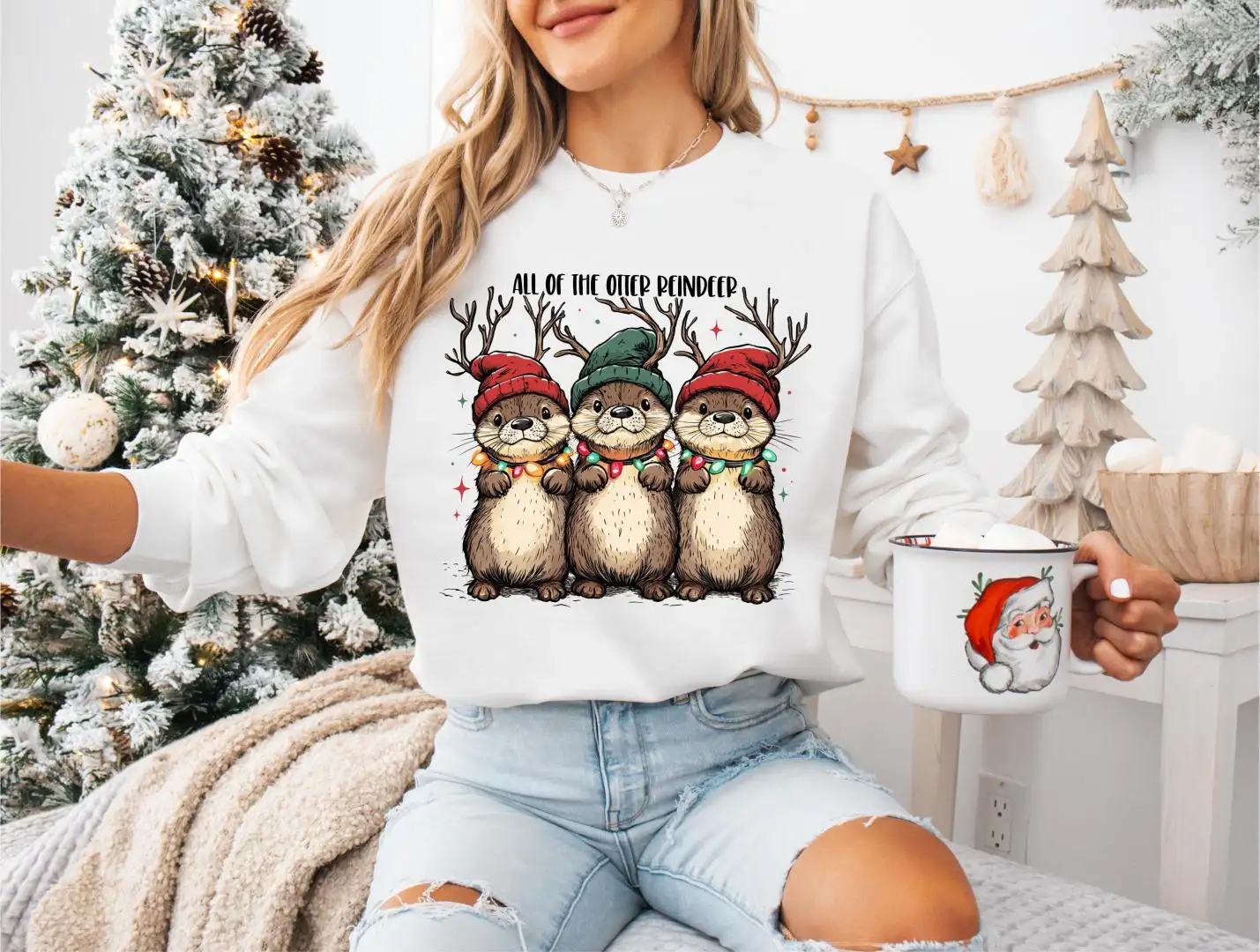 Review All Of The Otter Reindeer Sweatshirt, Xmas Animal Sweater, Winter Holiday T-Shirt, Christmas Trip Shirt, Christmas Otters Shirt
