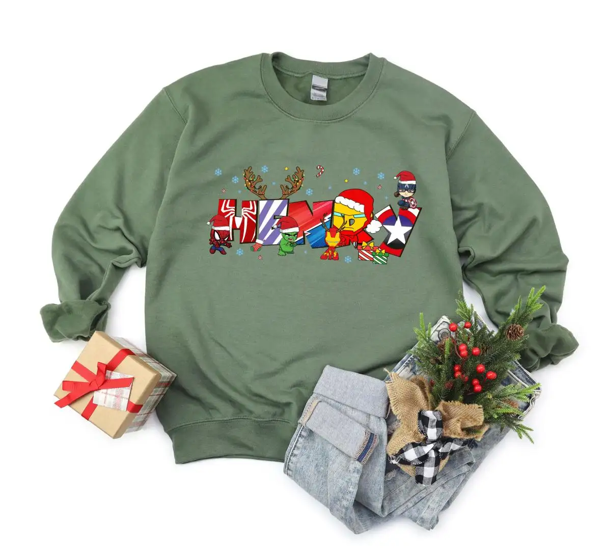 Avengers Christmas Name Shirt, Santa Iron Man Sweater, Spiderman Birthday Gift, Marvel Family Holiday Tee, Superhero Disney Sweatshirt
