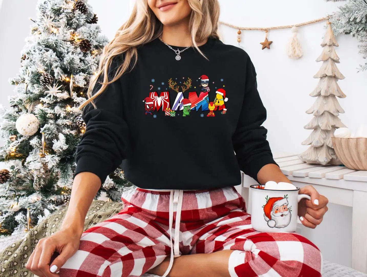 Review Avengers Christmas Name Shirt, Santa Iron Man Sweater, Spiderman Birthday Gift, Marvel Family Holiday Tee, Superhero Disney Sweatshirt