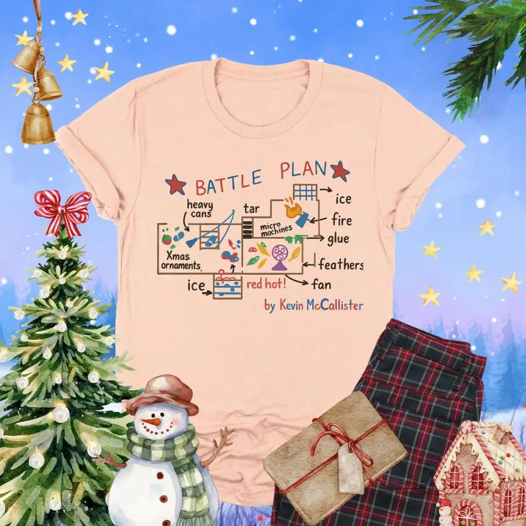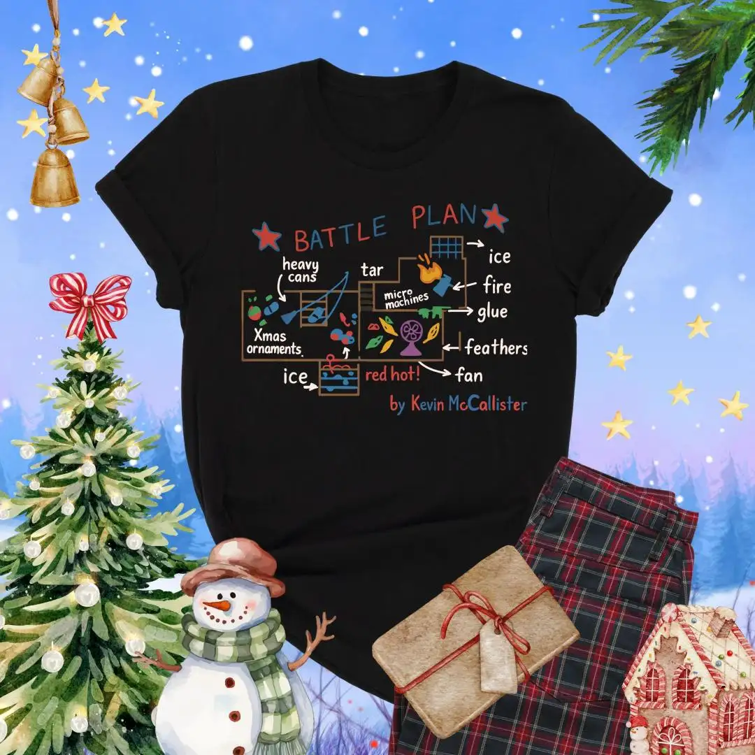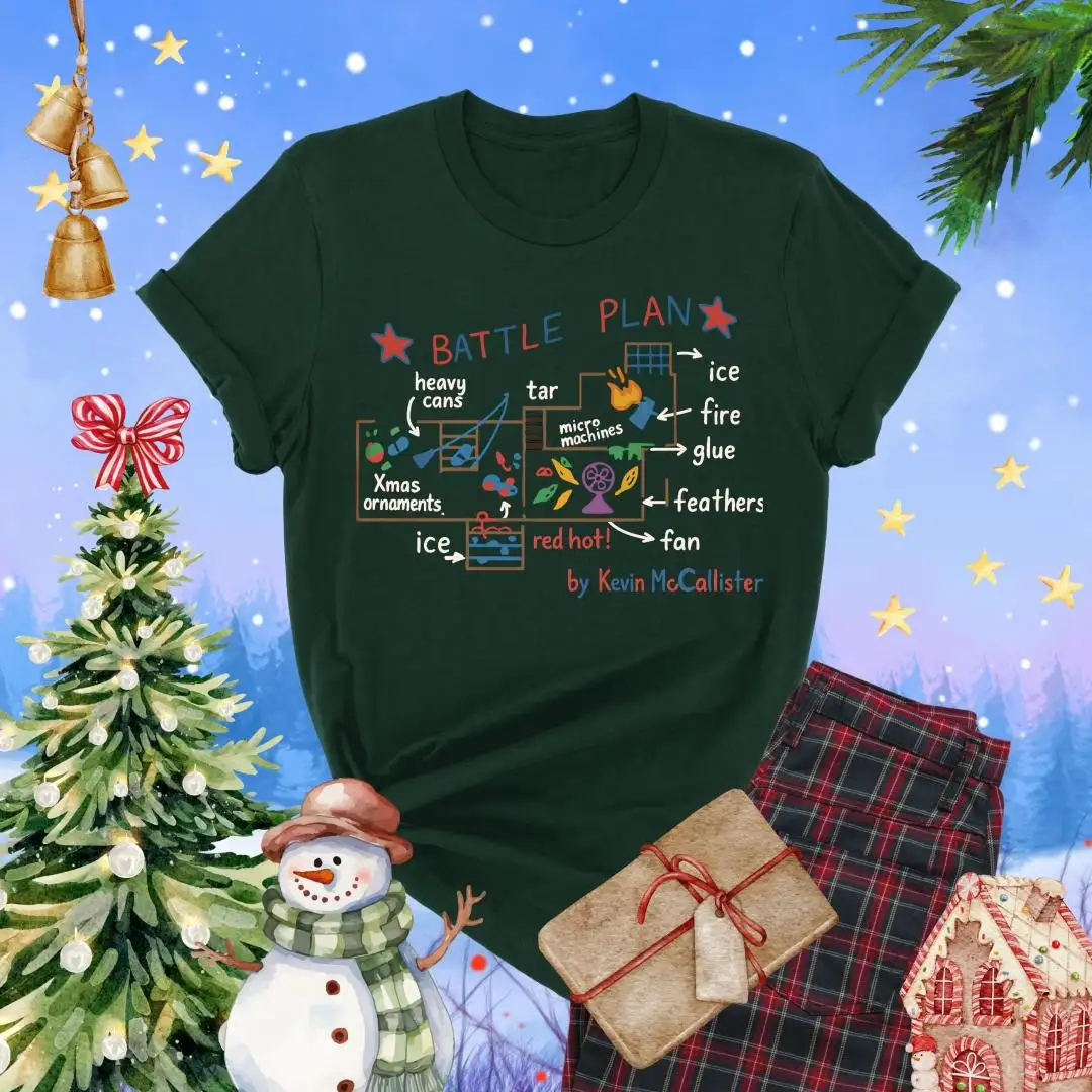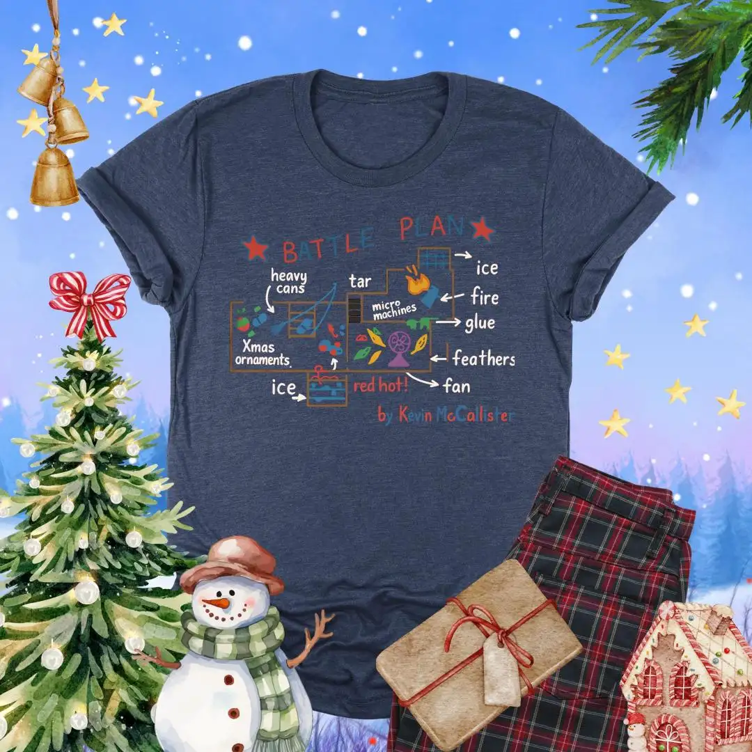 Battle Plan Christmas Shirt, Festive Xmas Gift, Cute Home Alone Inspired Top, Kevin Style Trap Map Graphic, Funny Holiday Movie Tee