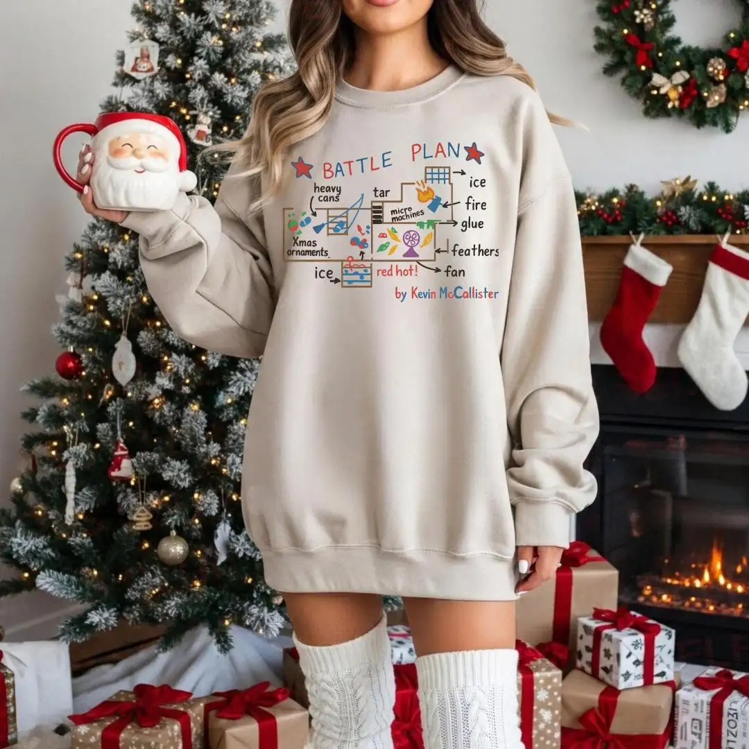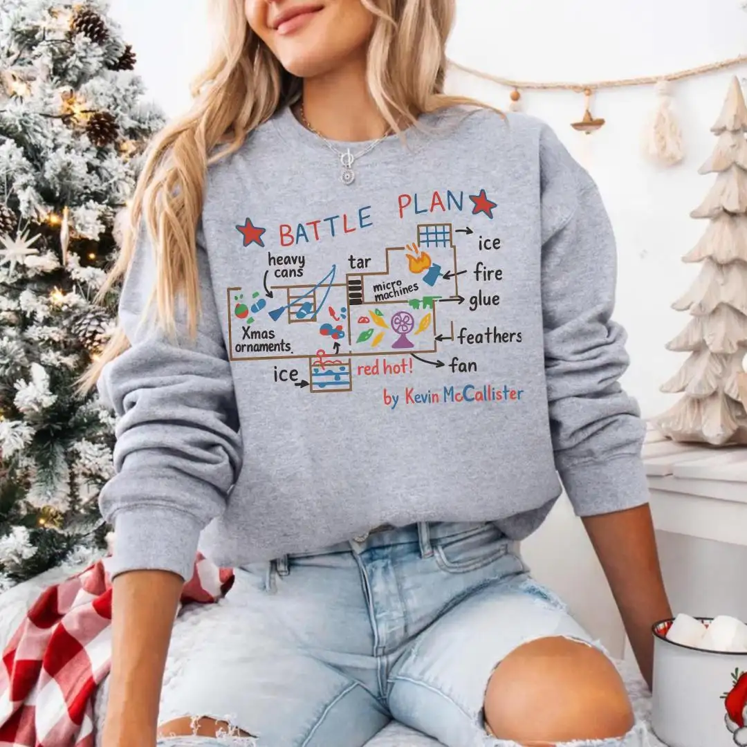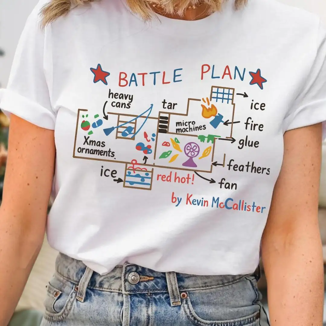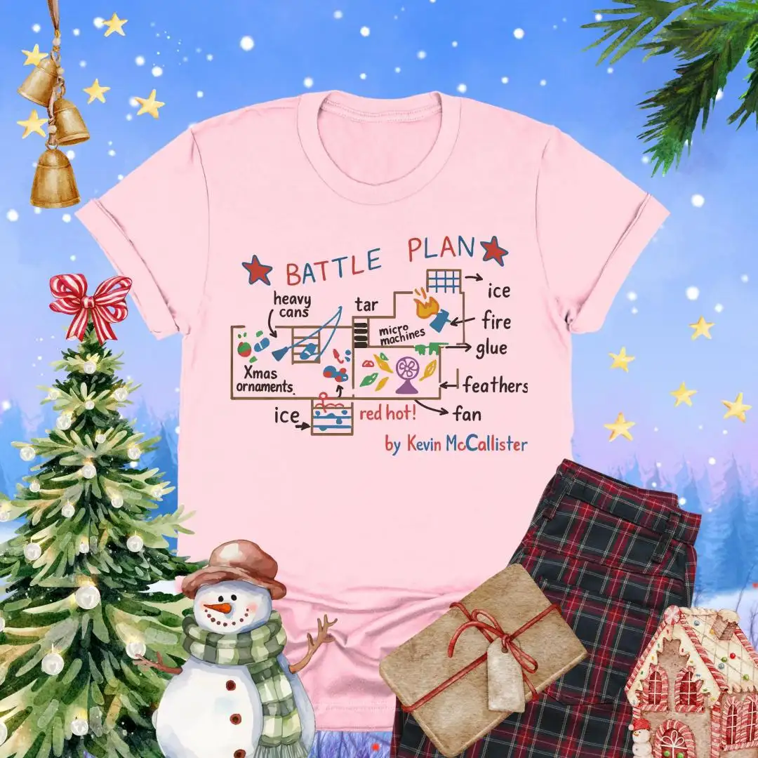 Battle Plan Christmas Shirt, Festive Xmas Gift, Cute Home Alone Inspired Top, Kevin Style Trap Map Graphic, Funny Holiday Movie Tee