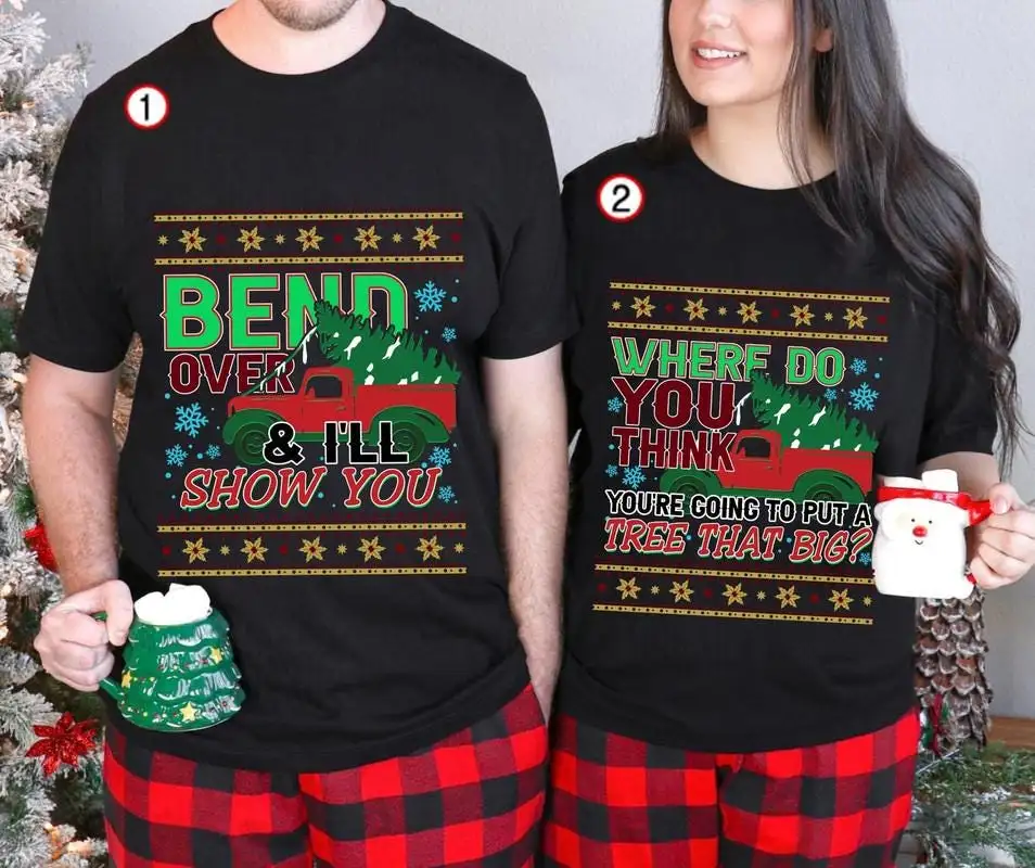 Bend Over And I'll Show You Christmas Couple Matching Comfort Colors Shirt, Christmas Tree Shirt, Griswold Family Shirts, Christmas Vacation