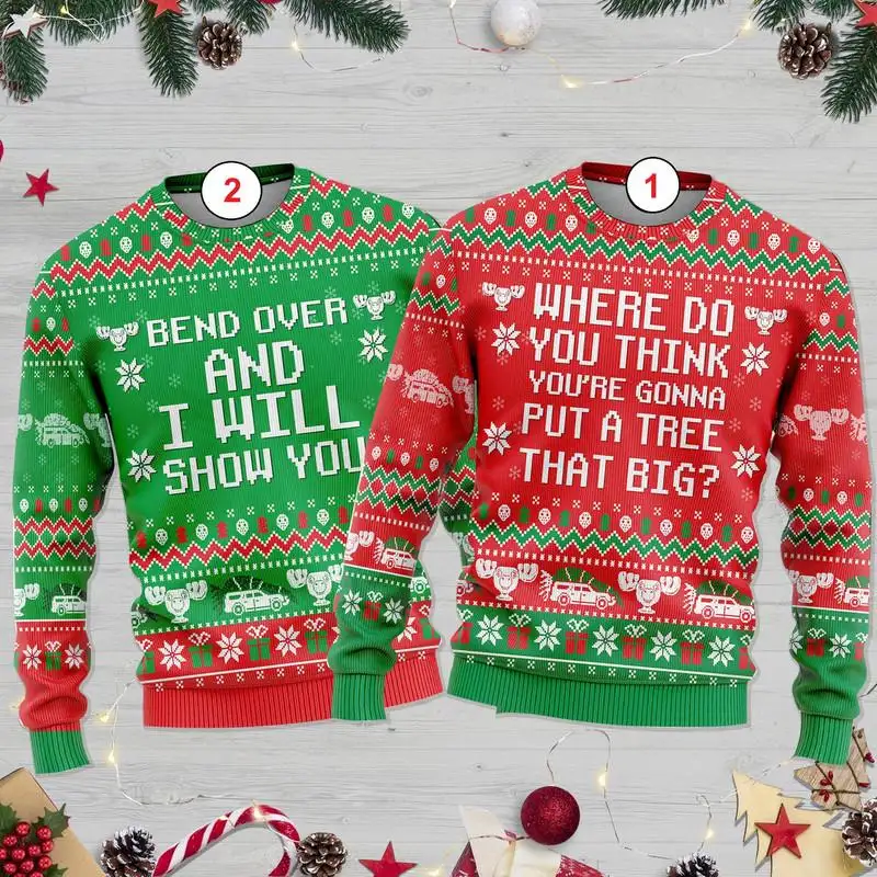 Bend Over and I'll Show You Christmas Couple Matching Ugly Sweater, Family Christmas Shirt 00, National Lampoon's Christmas Vacation Shirt