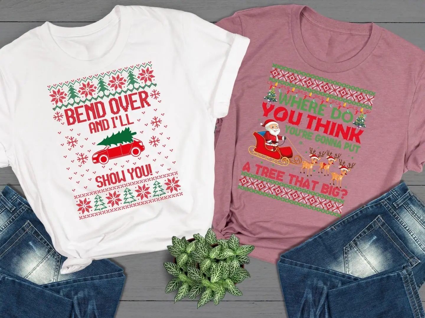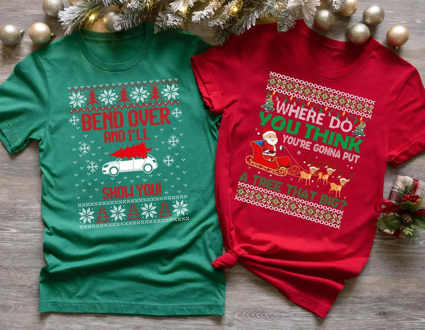 Bend Over And I'll Show You Couples Christmas Sweatshirts, Matching Ugly Crewneck Set Shirts, Griswold Family Tee, Christmas Vacation Shirts