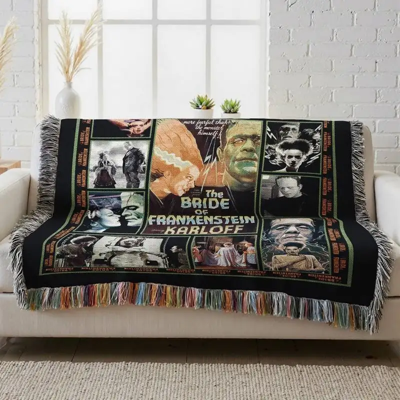 Review Bride of Frankenstein Woven Blanket, Frankenstein Vintage Horror Movie Blanket, Horror Christmas Decor Gift, Frankenstein Blanket