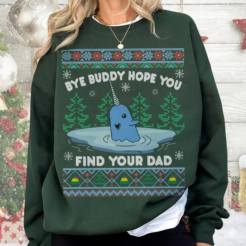 Review Bye Buddy Hope You Find Your Dad Shirt, Elf Movie Christmas Ugly Shirt, Xmas Classic Movie 90s Tee 02, Christmas Narwhal Shirt