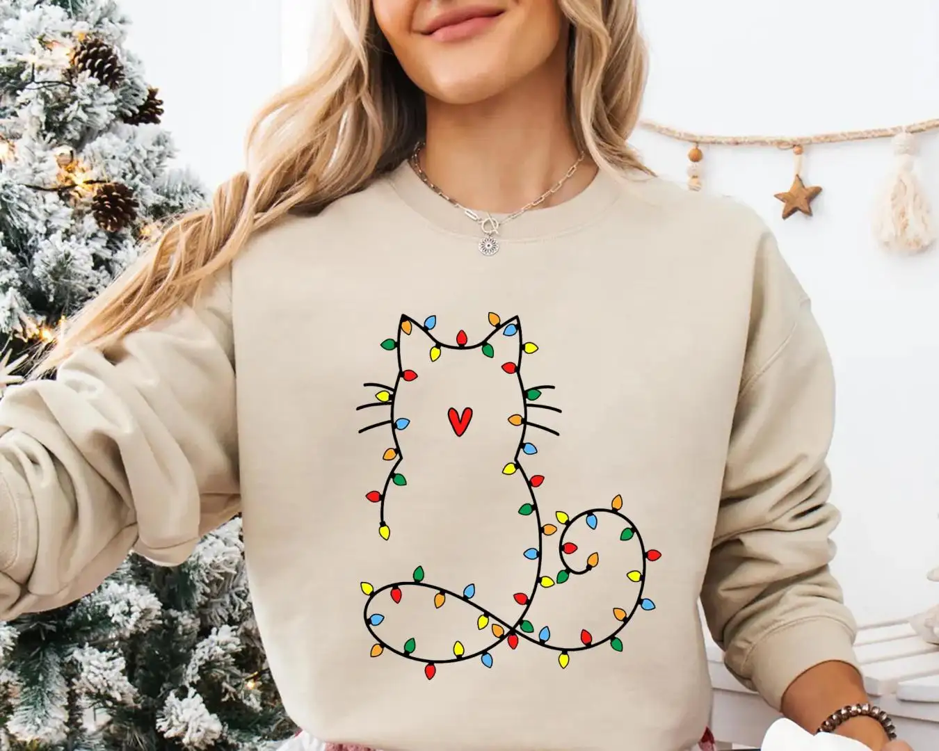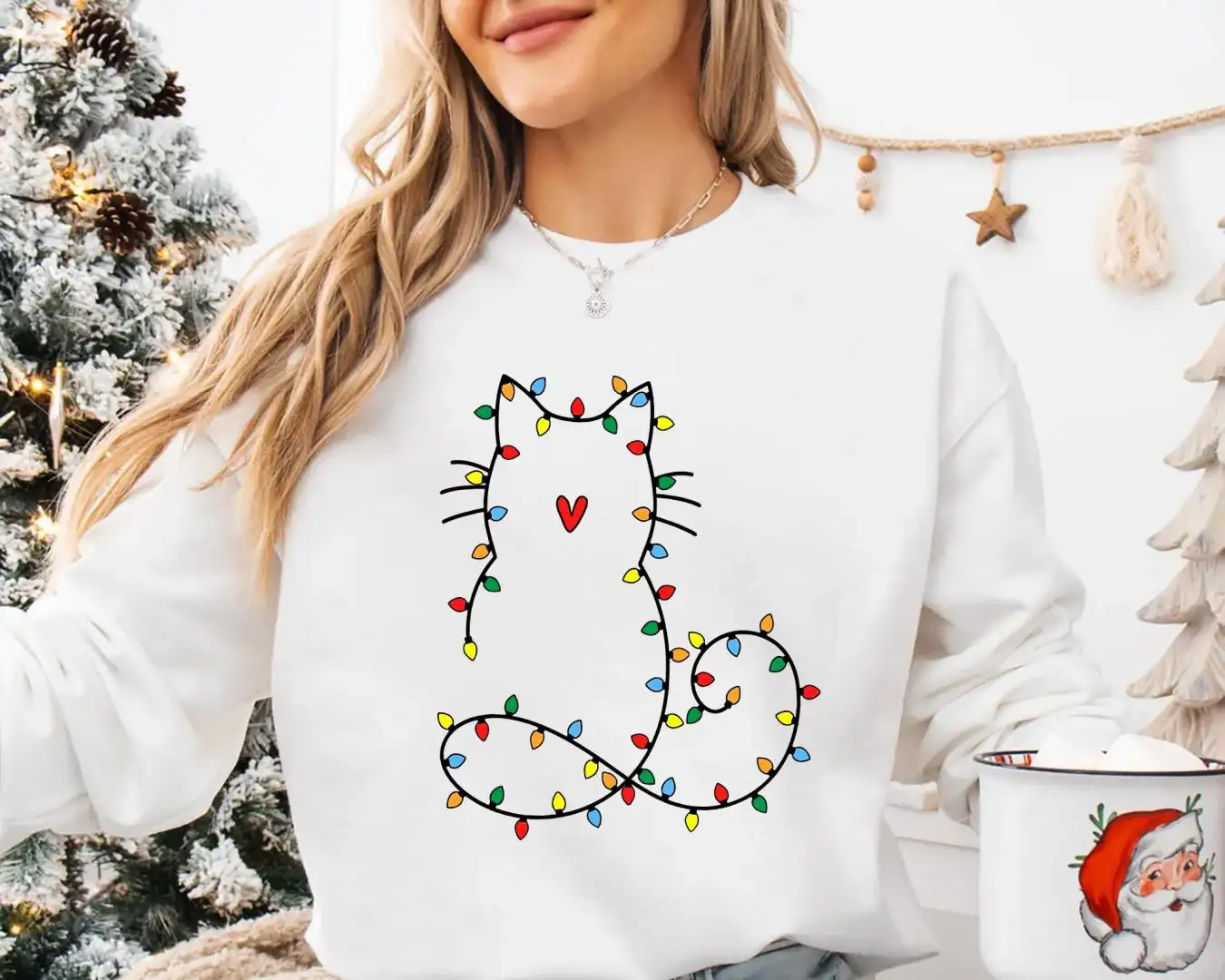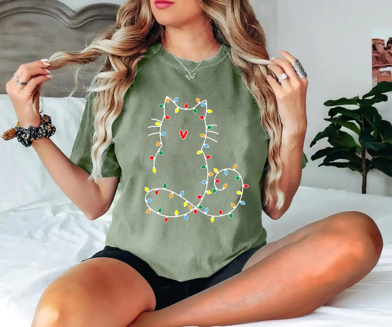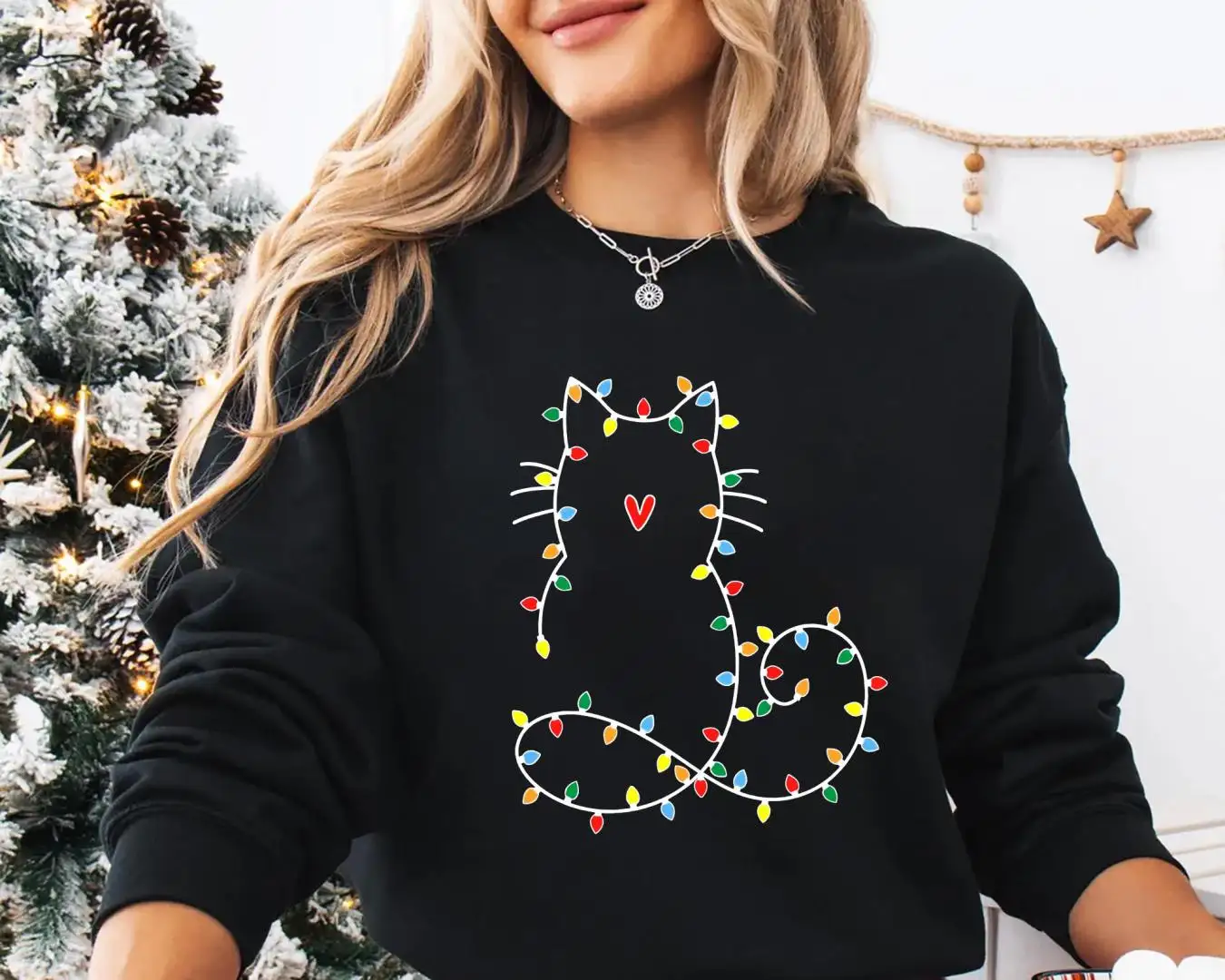 Cat Mom Christmas Lights Shirt for Cat Lovers