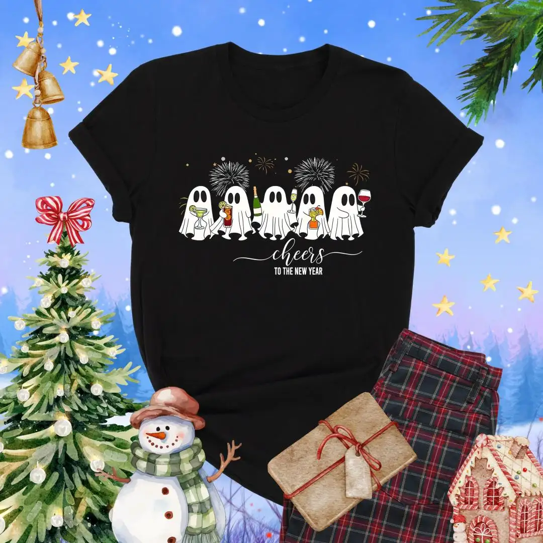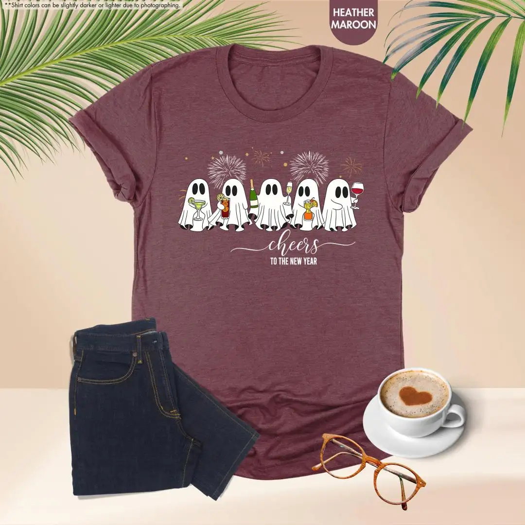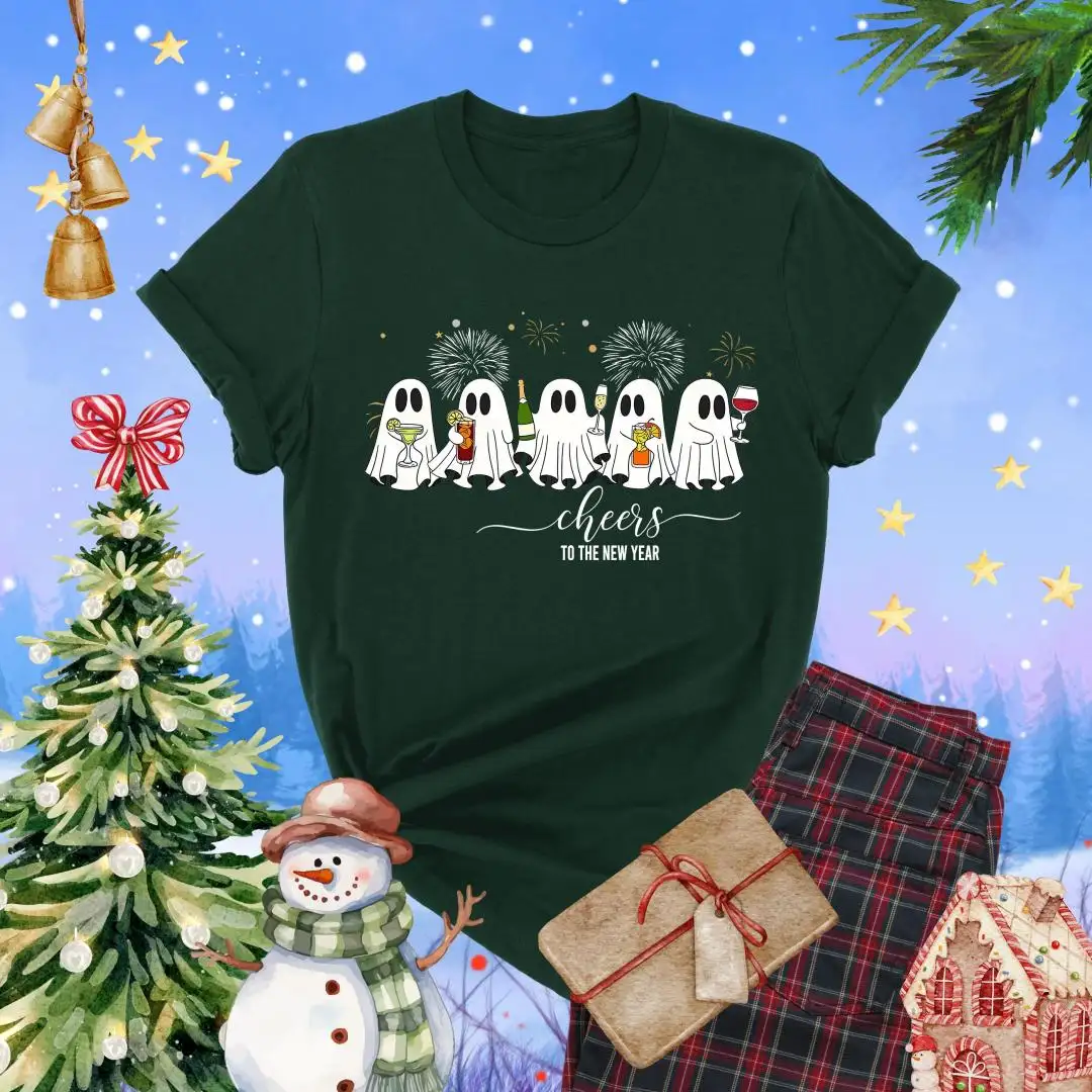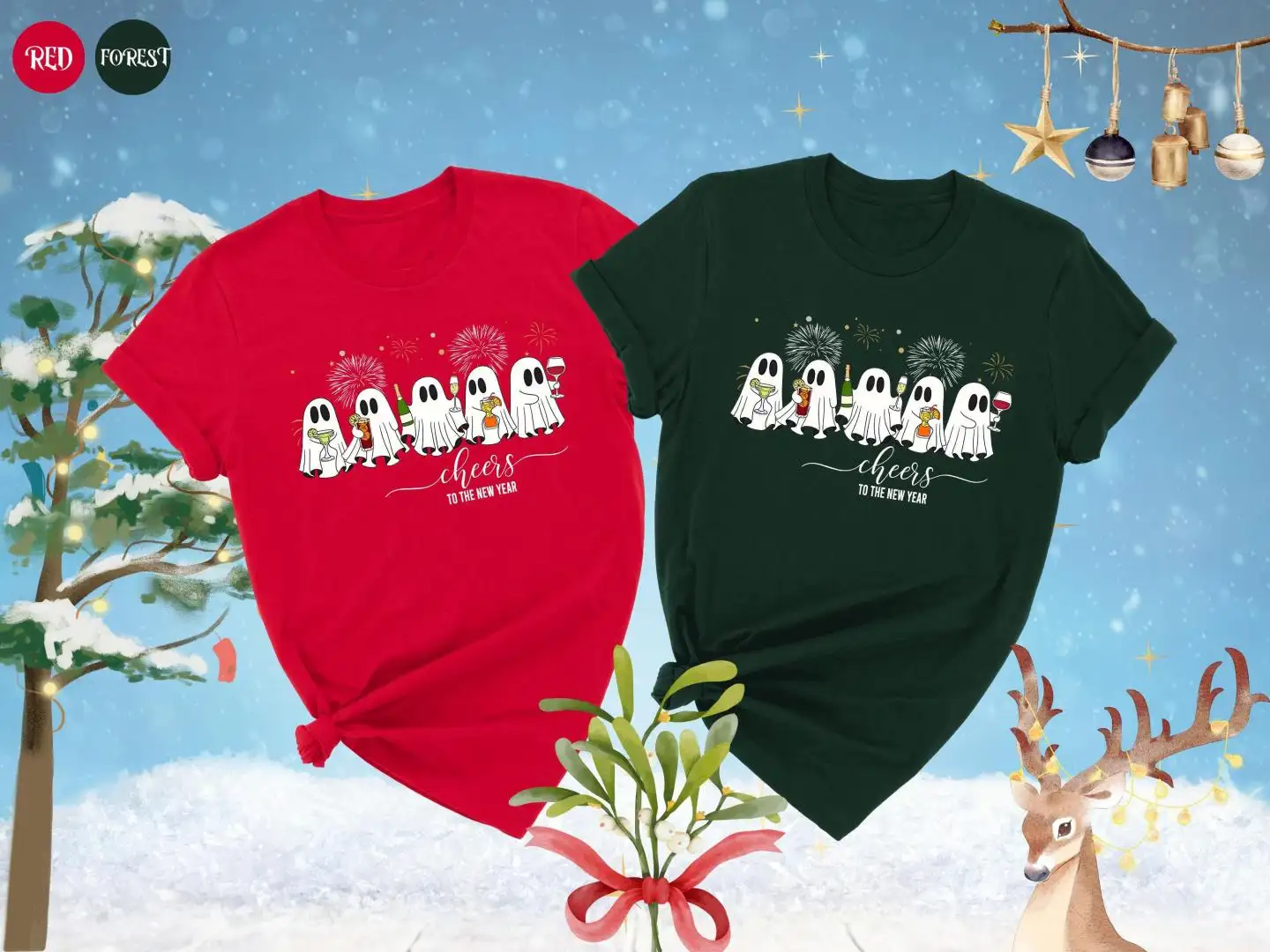 Review Cheers to the New Year Shirt, Christmas Party, New Year Shirt, 2025 New Year Party Shirt, Cute Ghost Champagne Shirt, Champagne Lovers Gift
