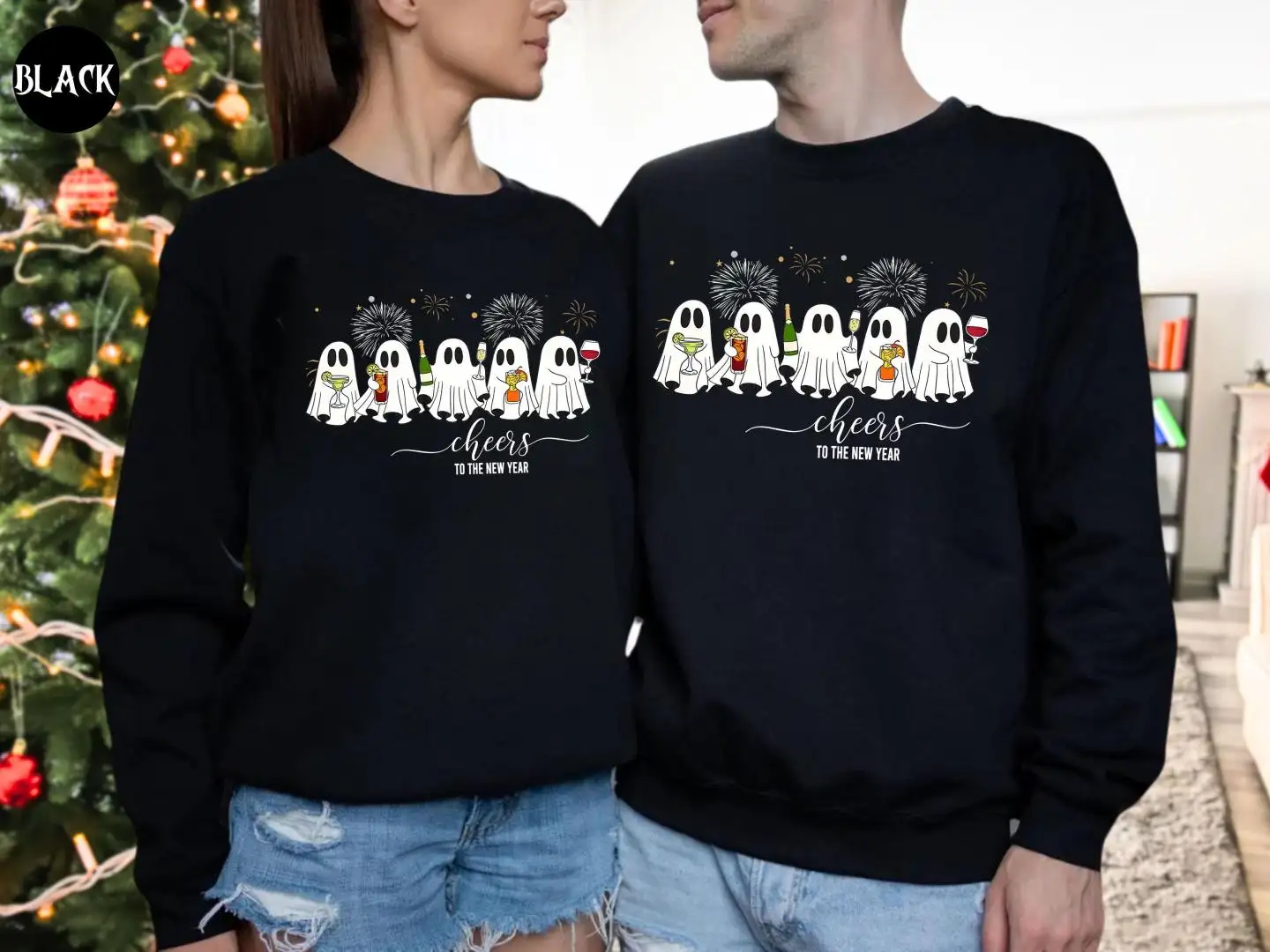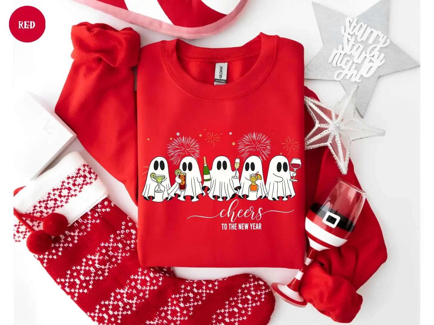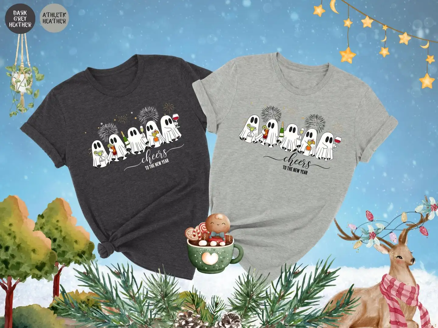 Review Cheers to the New Year Shirt, Christmas Party, New Year Shirt, 2025 New Year Party Shirt, Cute Ghost Champagne Shirt, Champagne Lovers Gift