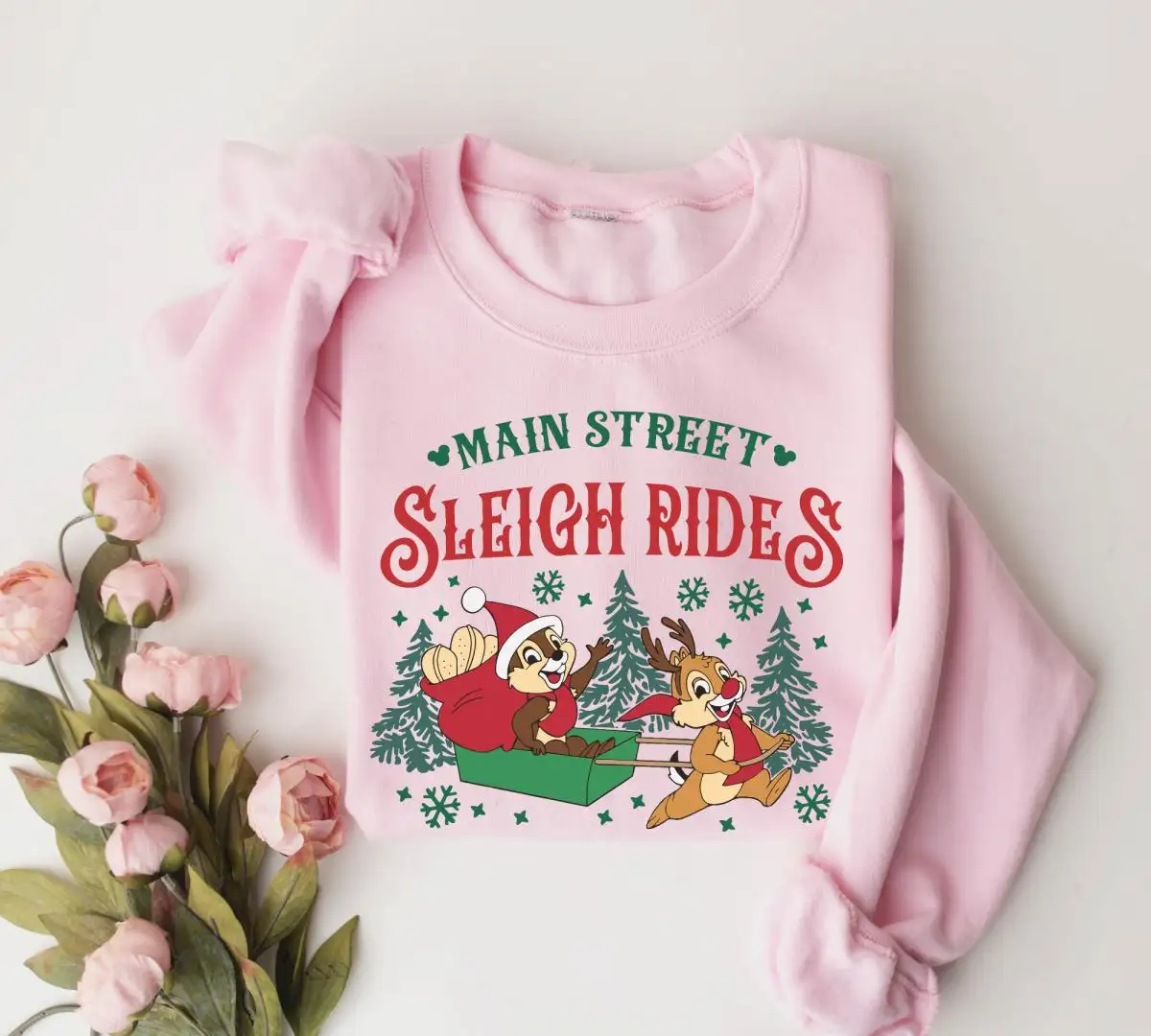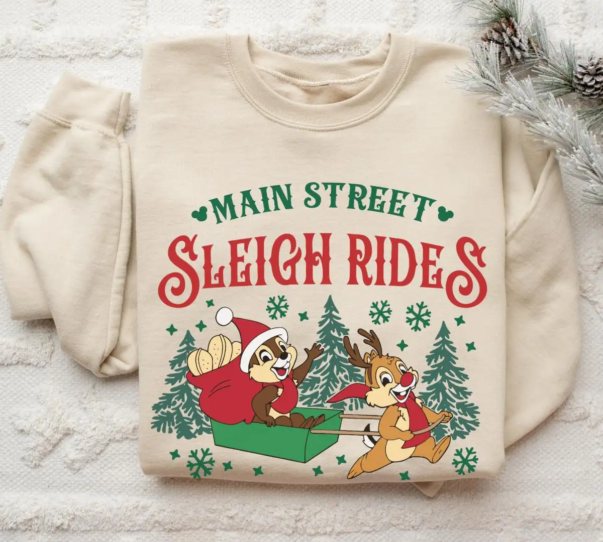 Chip And Dale Christmas Main Street Sleigh Rides Shirt