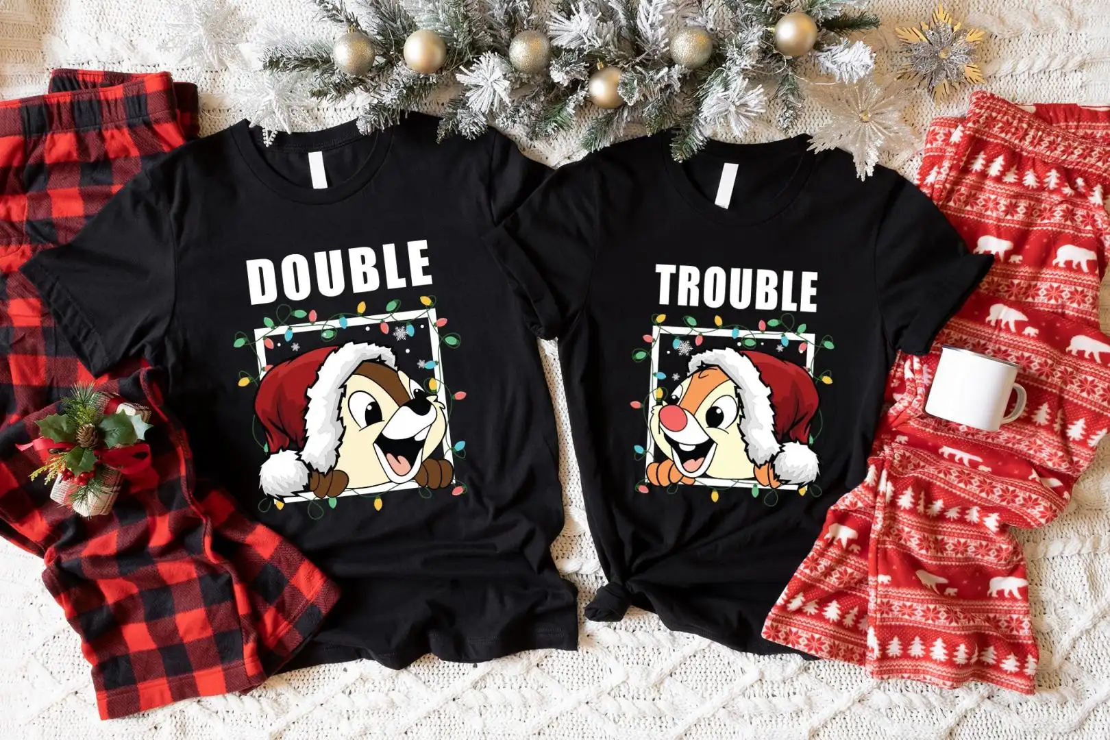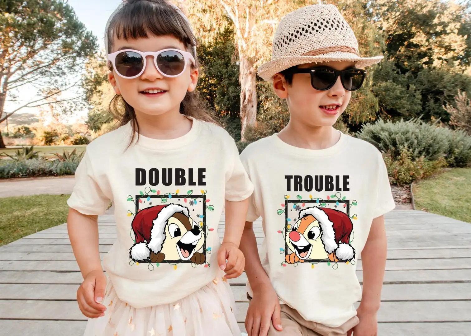 Chip N Dale Double Trouble Shirt, Christmas Kids Gift Tees, Santa Hat Chip and Dale Sweatshirt, Disney Christmas Tee, Disneyland Holiday Tee