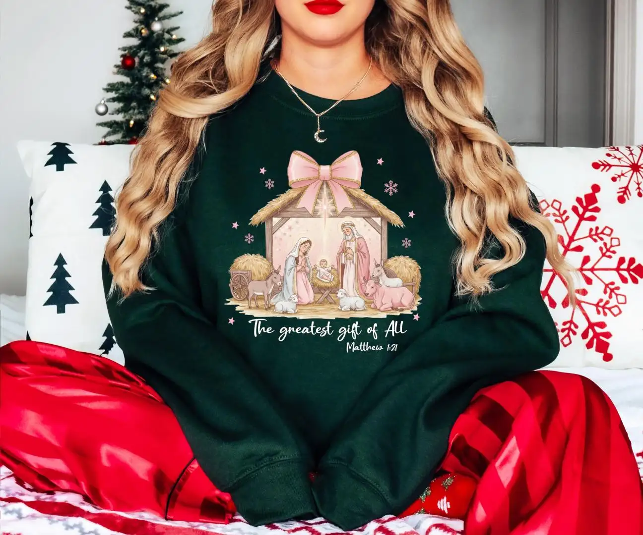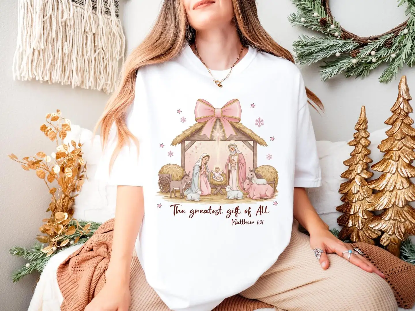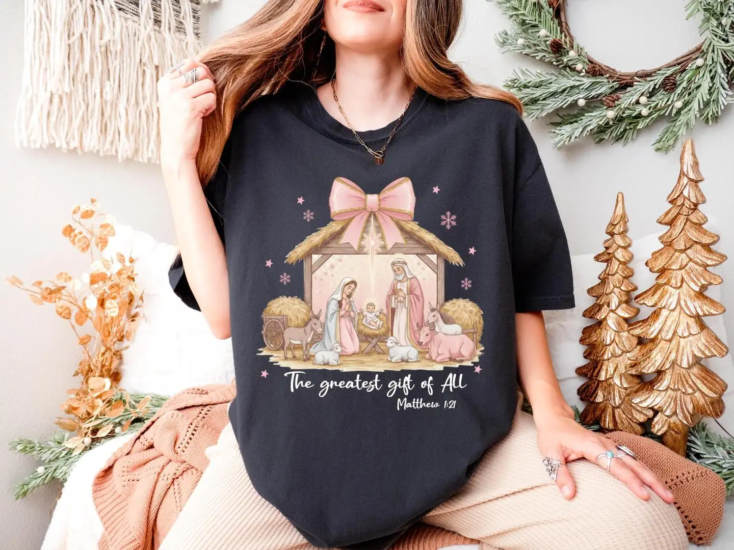 Christian Christmas Shirt with Nativity Scene Bible Verse