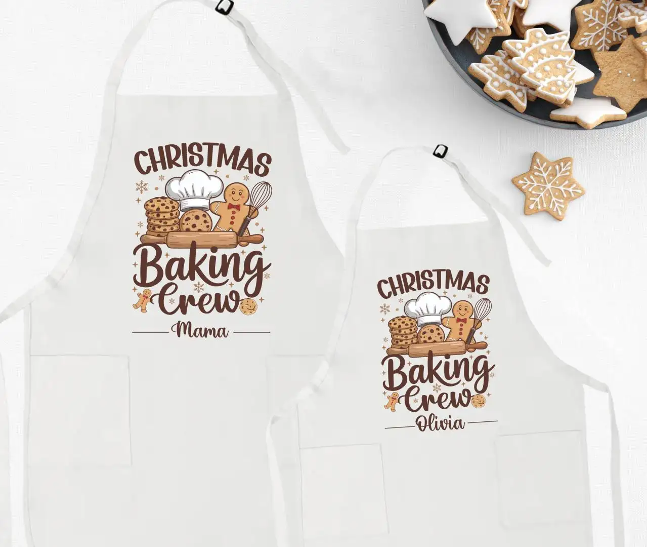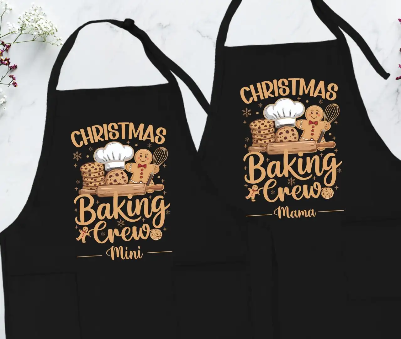 Christmas Baking Crew Apron, Christmas Cookie Crew Apron, Personalized Mama Mini Apron, Christmas Mom and Kids Apron, Christmas Gift Aprons