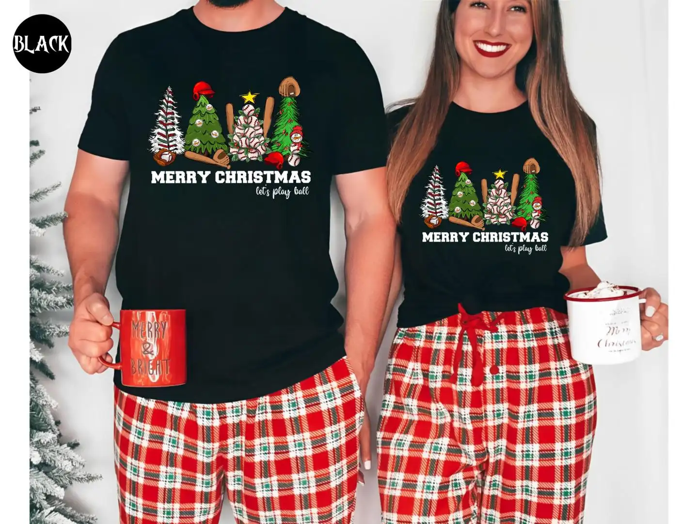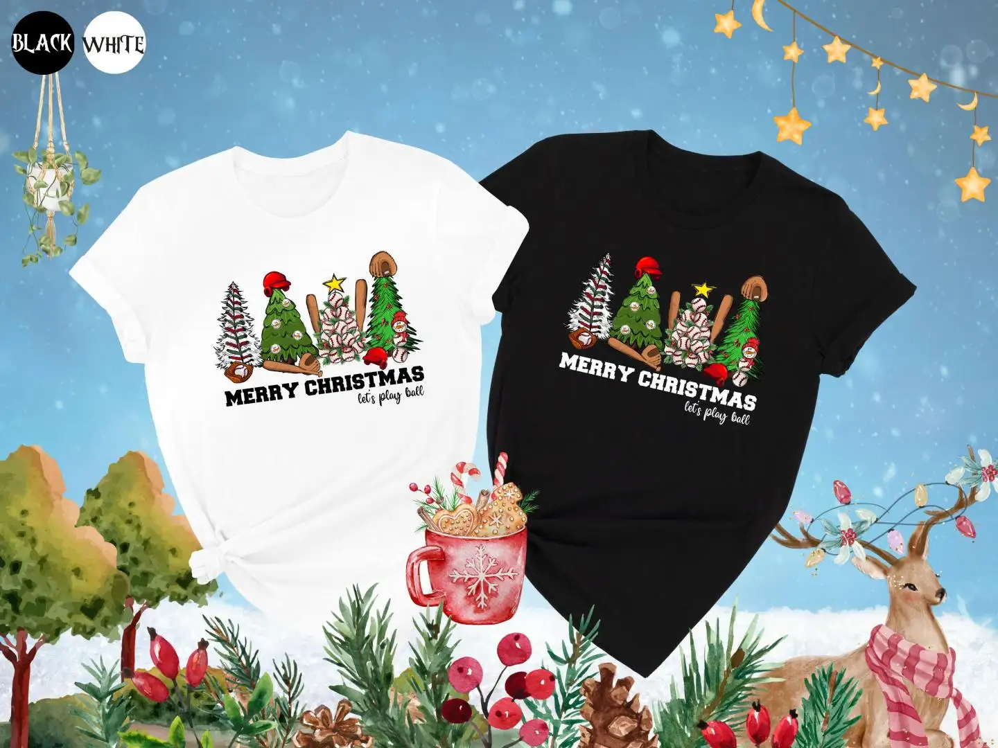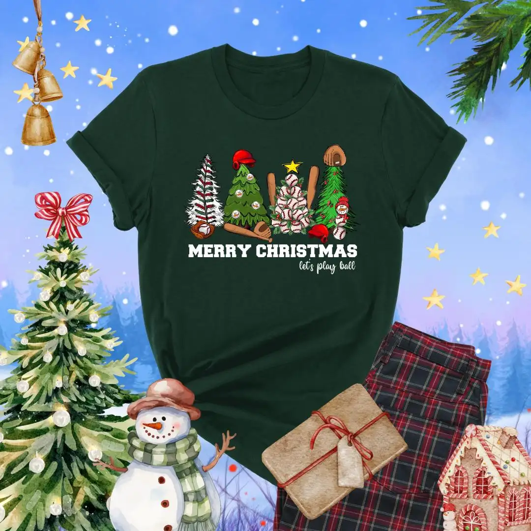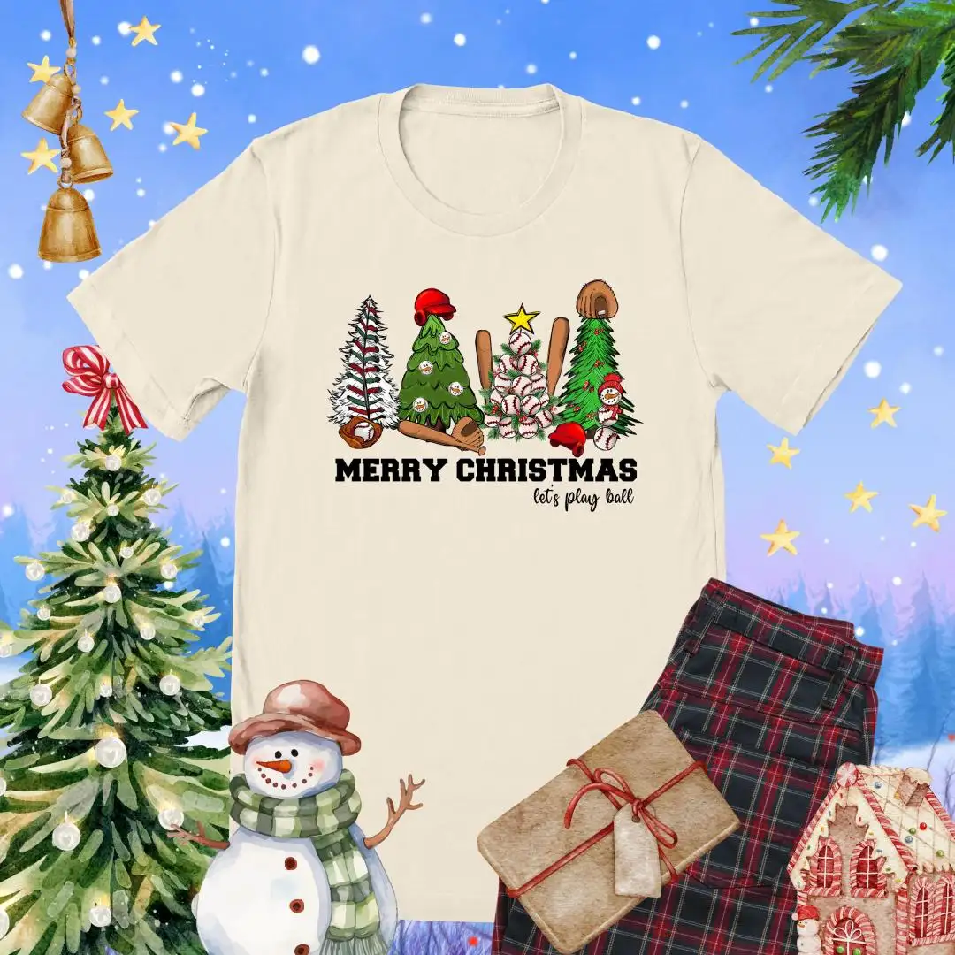 Christmas Baseball Shirt, Christmas Gift For Baseball Fans, Funny Xmas Baseball Tee, Christmas Tree T-Shirt, Merry Christmas Let’s Play Ball