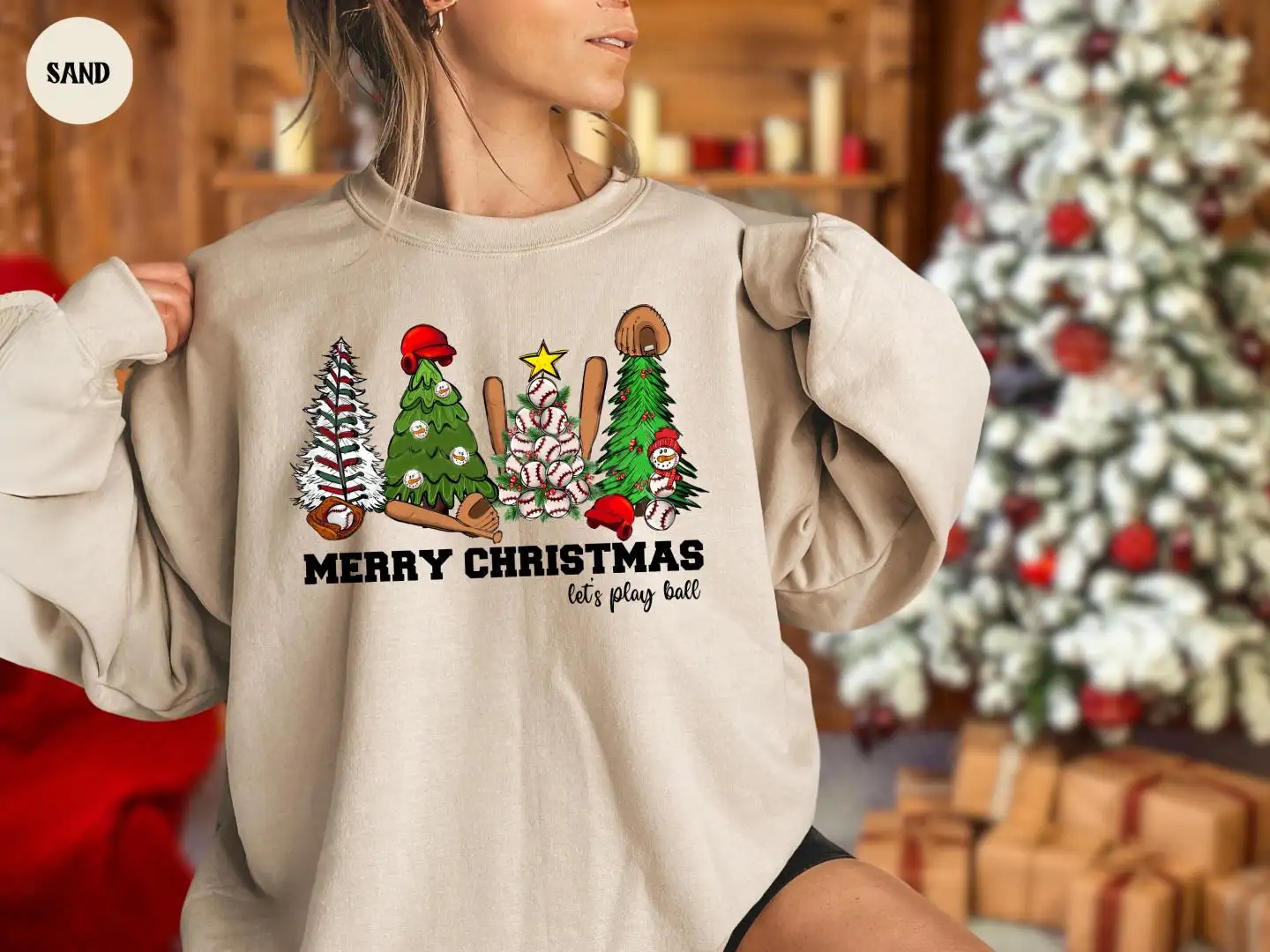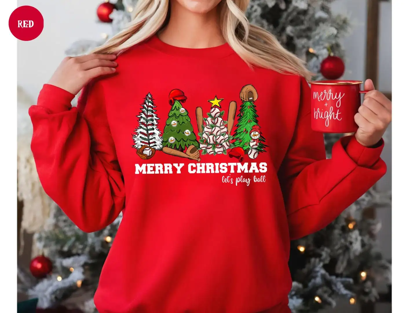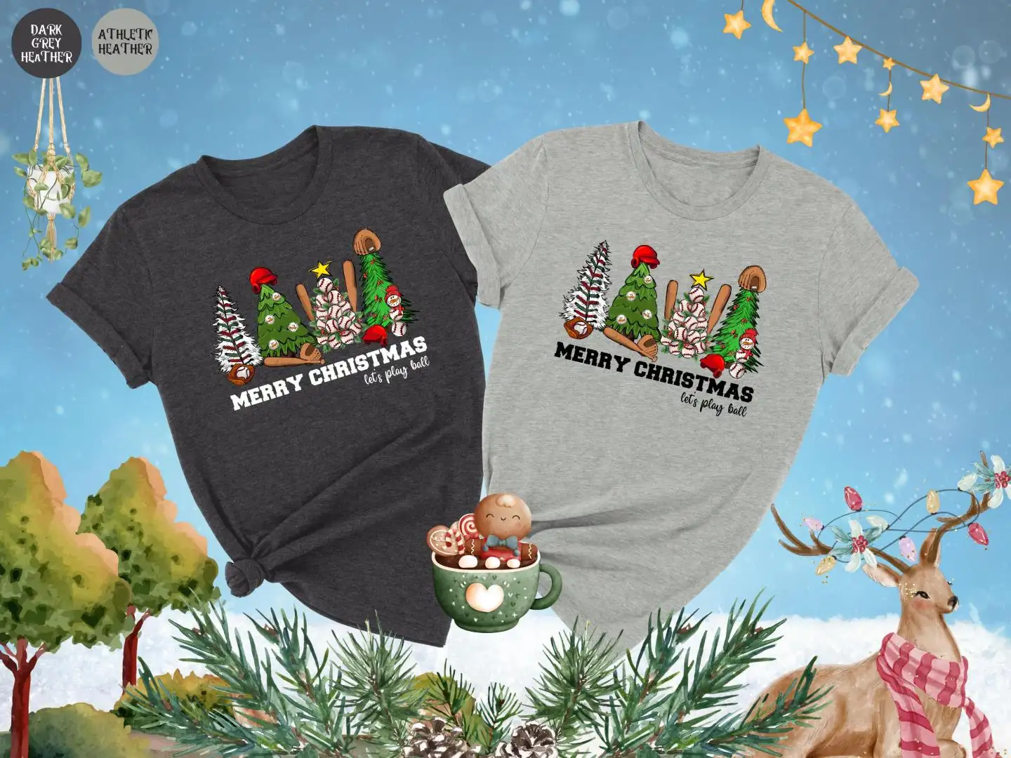 Christmas Baseball Shirt, Christmas Gift For Baseball Fans, Funny Xmas Baseball Tee, Christmas Tree T-Shirt, Merry Christmas Let’s Play Ball