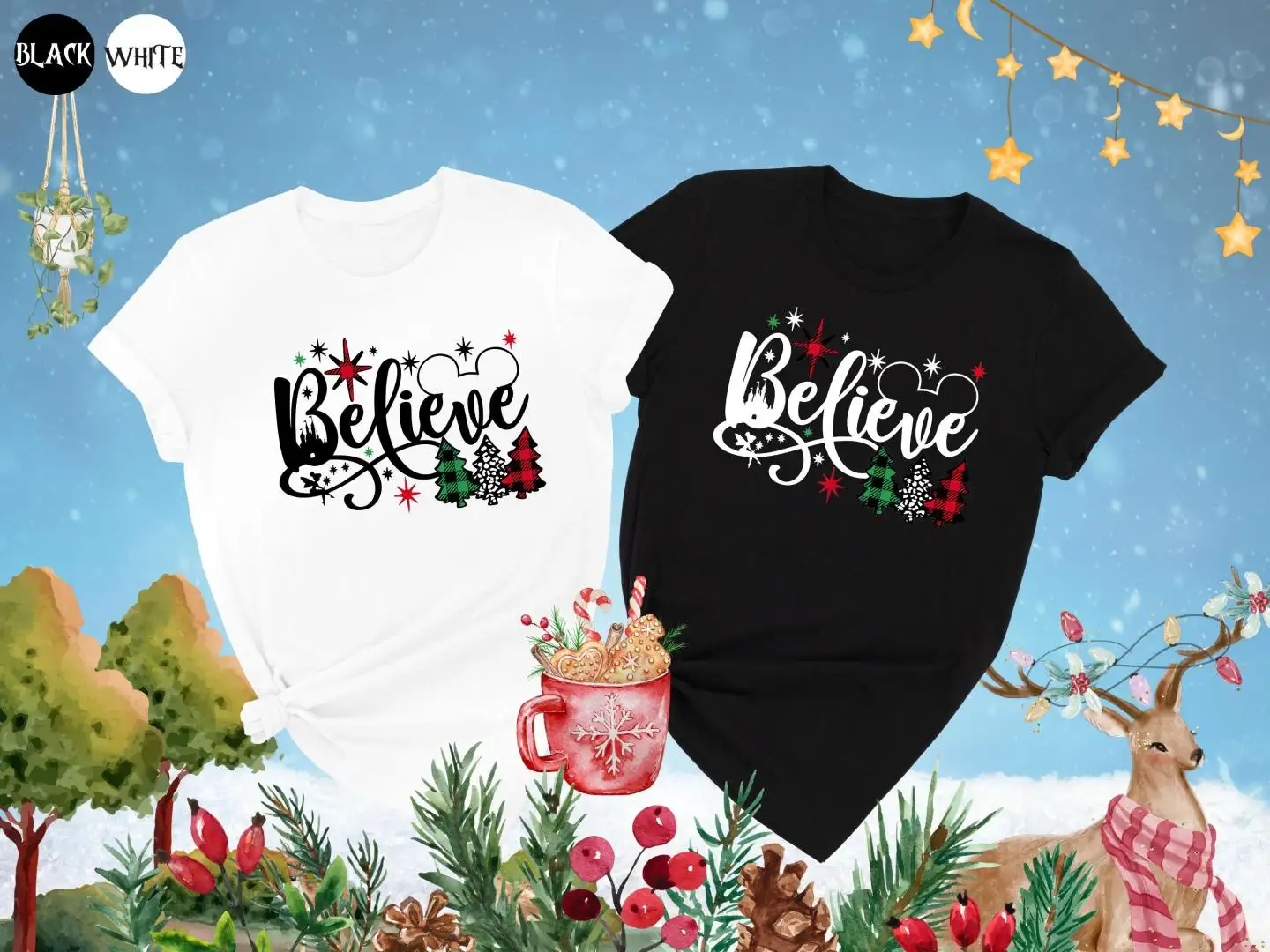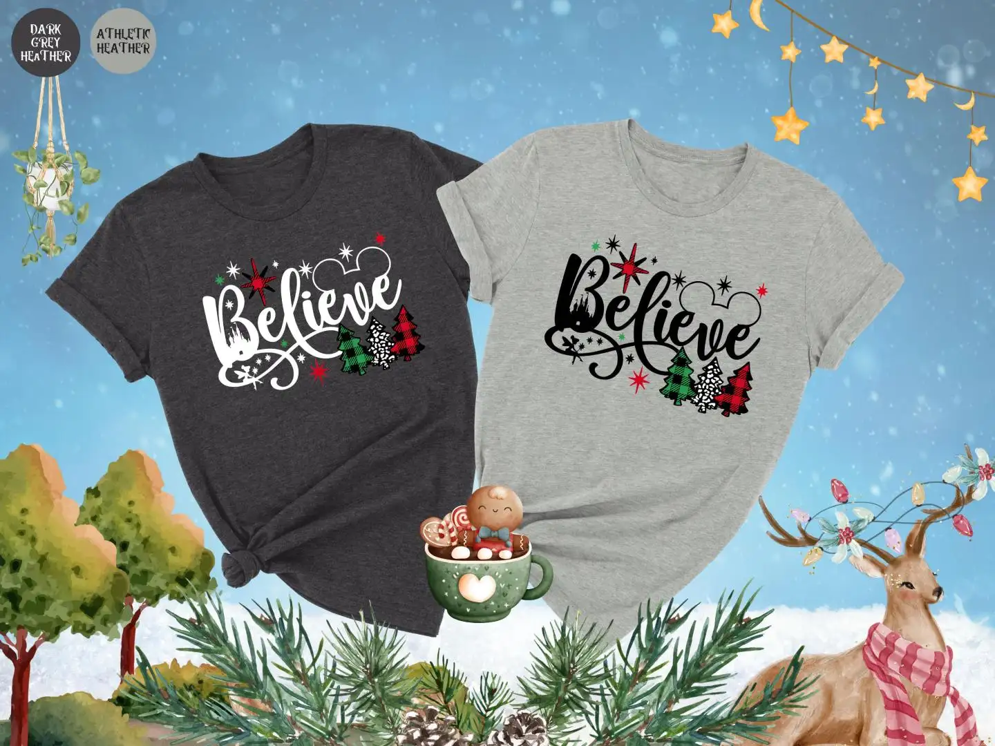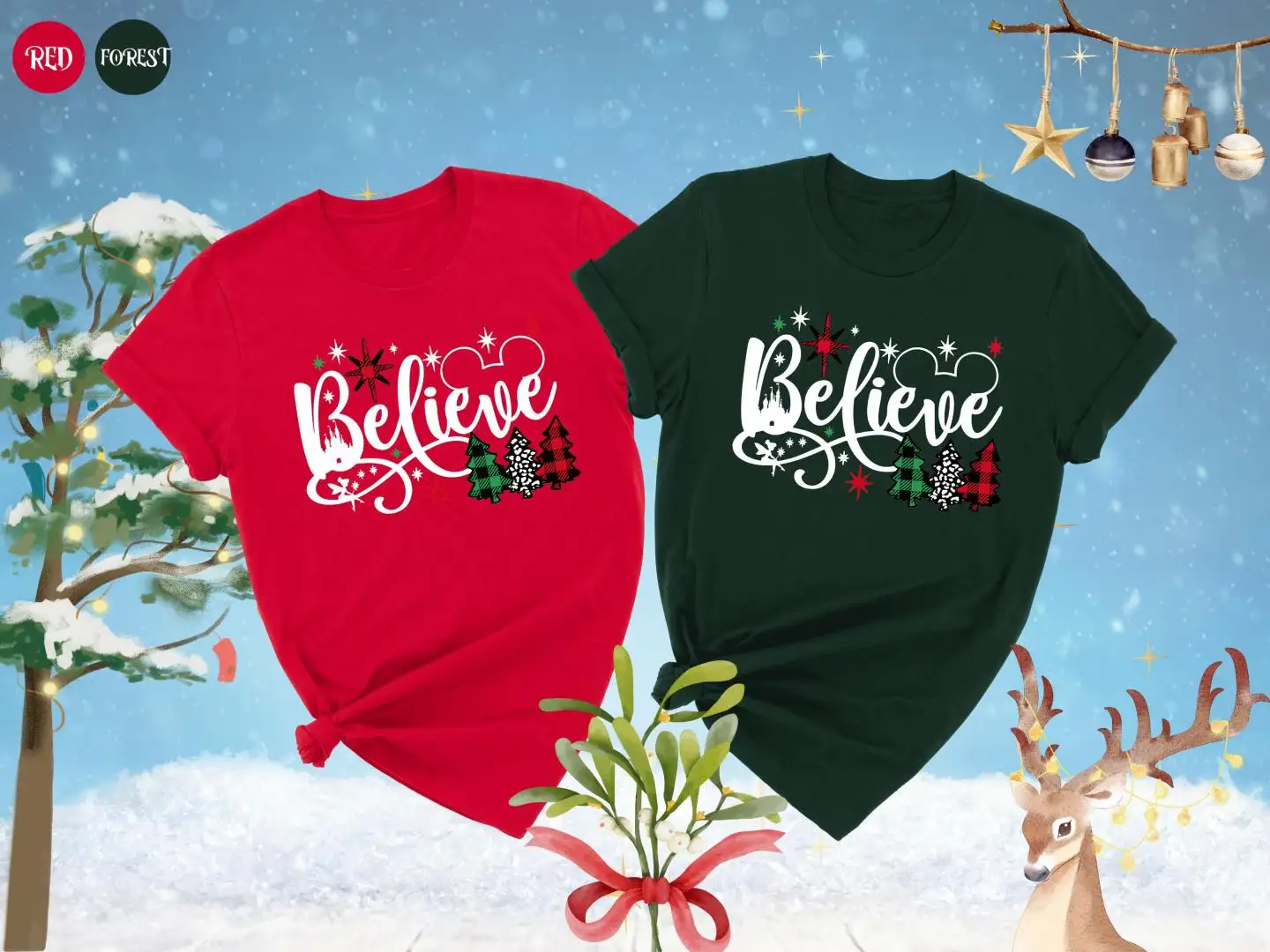 Review Christmas Believe Shirt, Disney Christmas Shirt, Christmas Tree Plaid Tee, Mickey Ears Shirt, Christmas Family Gift, Disney Family Trip Shirt