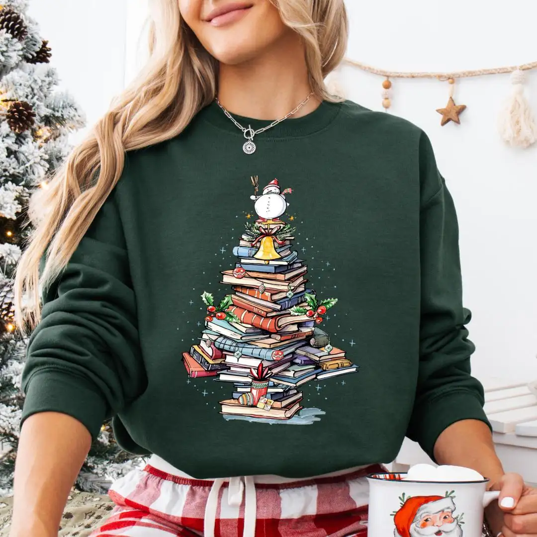 Christmas Book Tree Snowman Shirt, Book Lovers Xmas T-Shirt, Teacher Christmas Tee, Christmas Reading Shirt, Christmas Bookish Sweatshirt