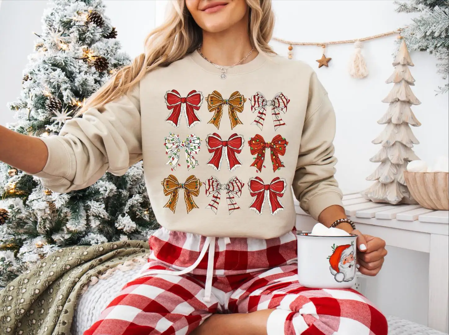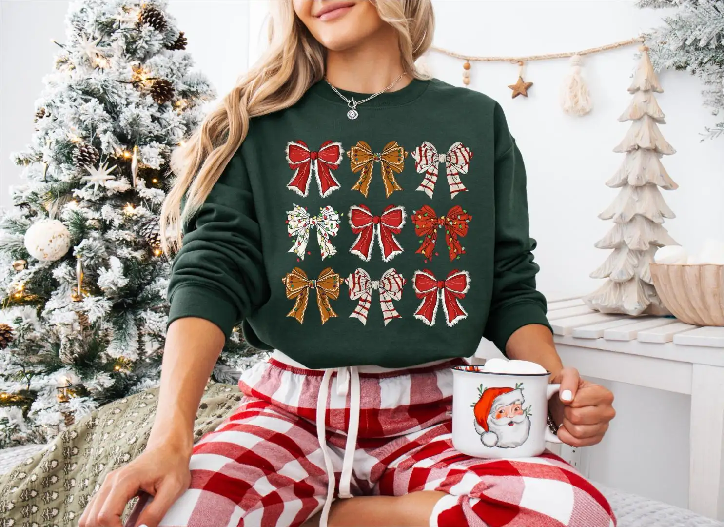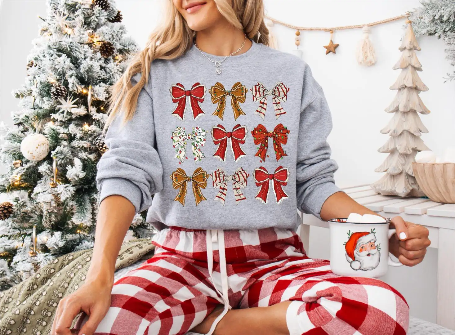Review Christmas Bows Shirt, Merry Christmas Shirt, Christmas Lights Gingerbread Santa Bows Sweater, Christmas Coquette Bows Sweatshirt