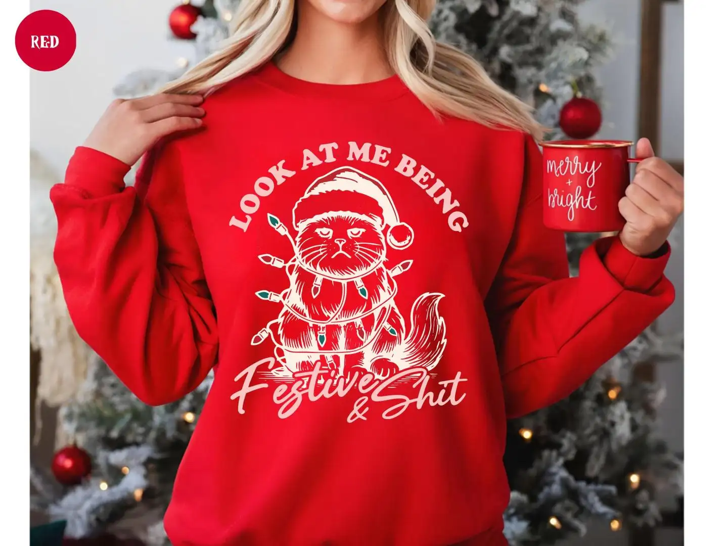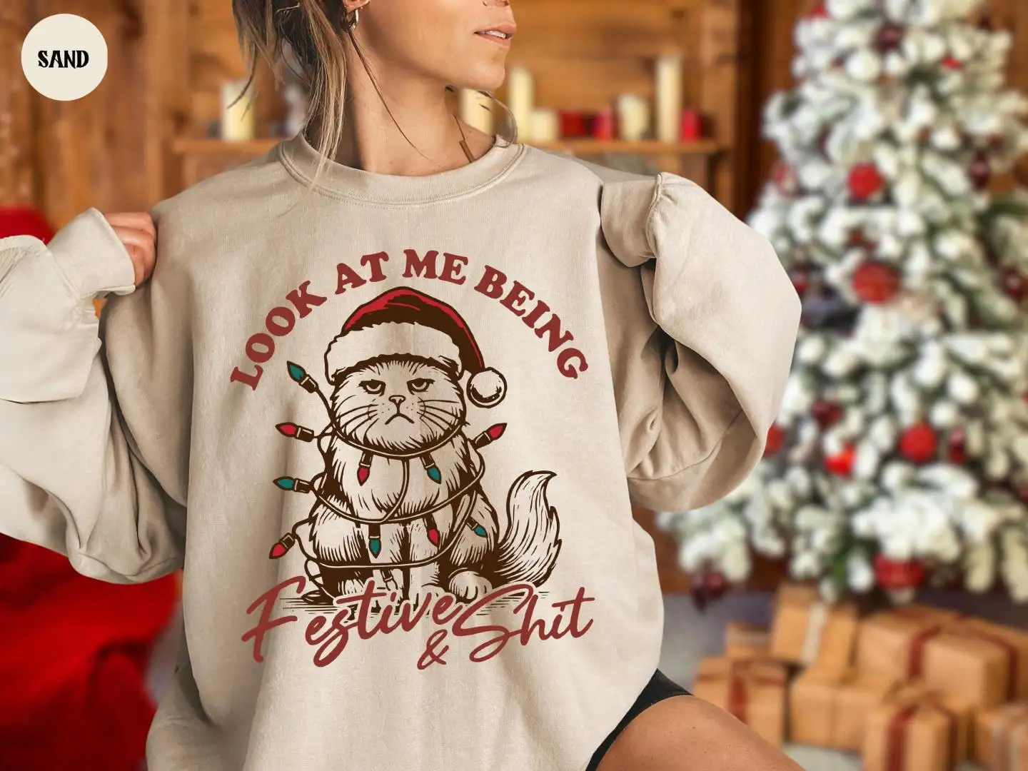 Christmas Cat Sweatshirt, Look At Me Being All Festive And Shit, Sarcastic Grumpy Cat Xmas Sweatshirt for Men & Women, Funny Holiday Hoodie
