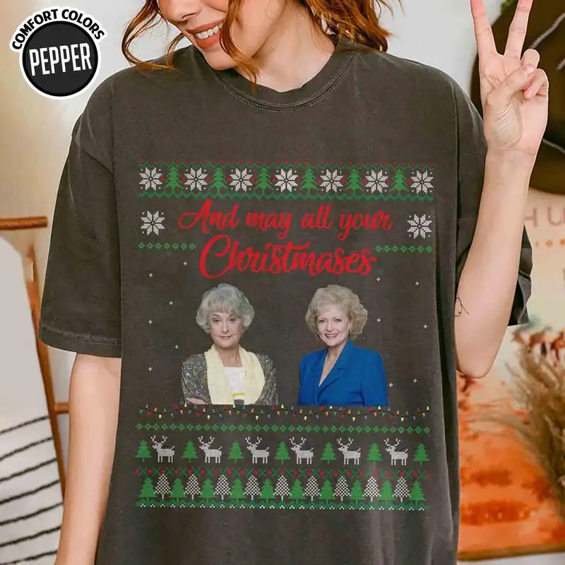 Review Christmas Golden Girls Sweater, Family Xmas Tee 08, Golden Girls Shirt, And May All Your Christmases Ugly Shirt, Stay Golden Christmas Shirt