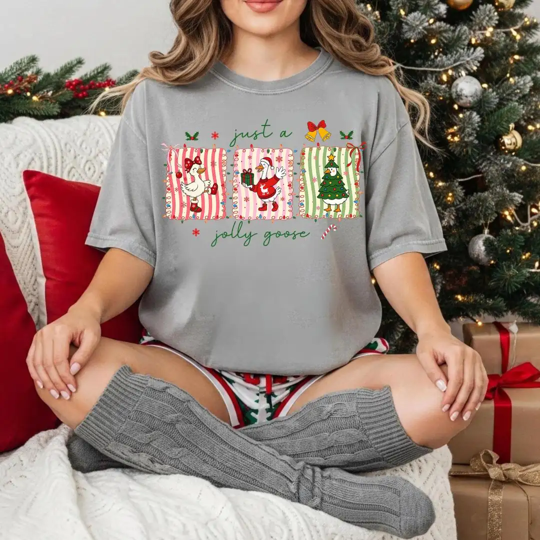 Christmas Goose Comfort Colors Shirt, Silly Goose Girly Christmas Shirt, Holiday Shirt For Women, Funny Xmas Party Gift, Jolly Goose Shirt