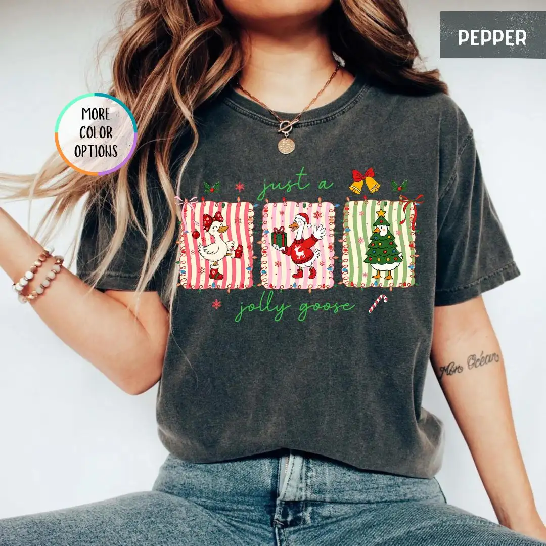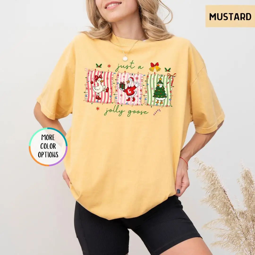 Review Christmas Goose Comfort Colors Shirt, Silly Goose Girly Christmas Shirt, Holiday Shirt For Women, Funny Xmas Party Gift, Jolly Goose Shirt