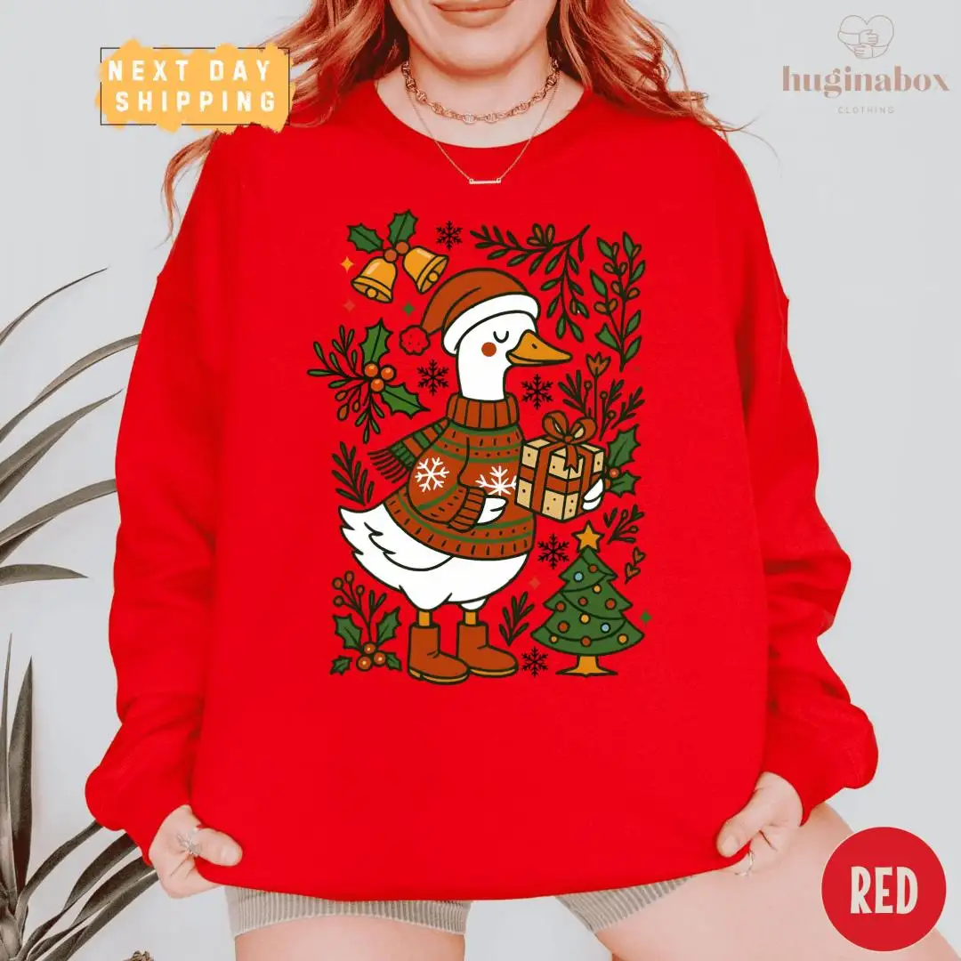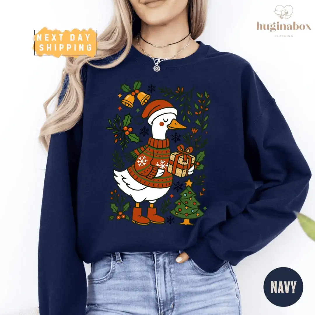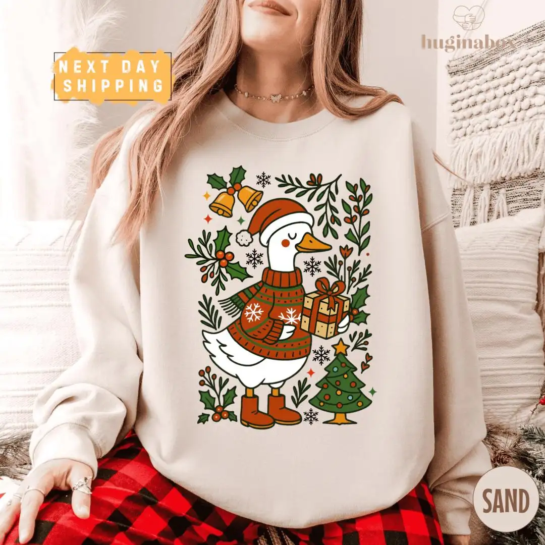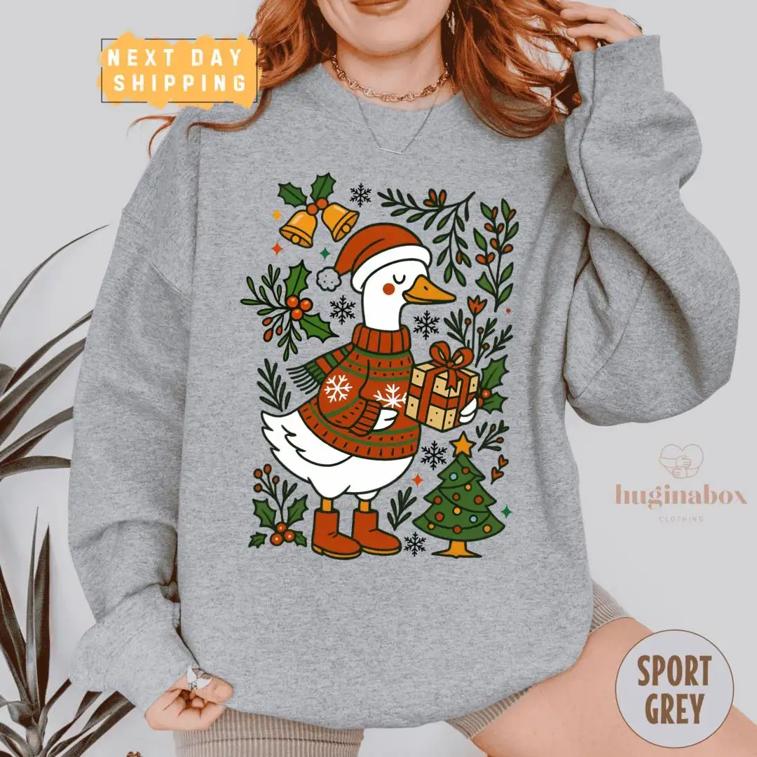 Christmas Goose Holiday Shirt with Festive Tree Design