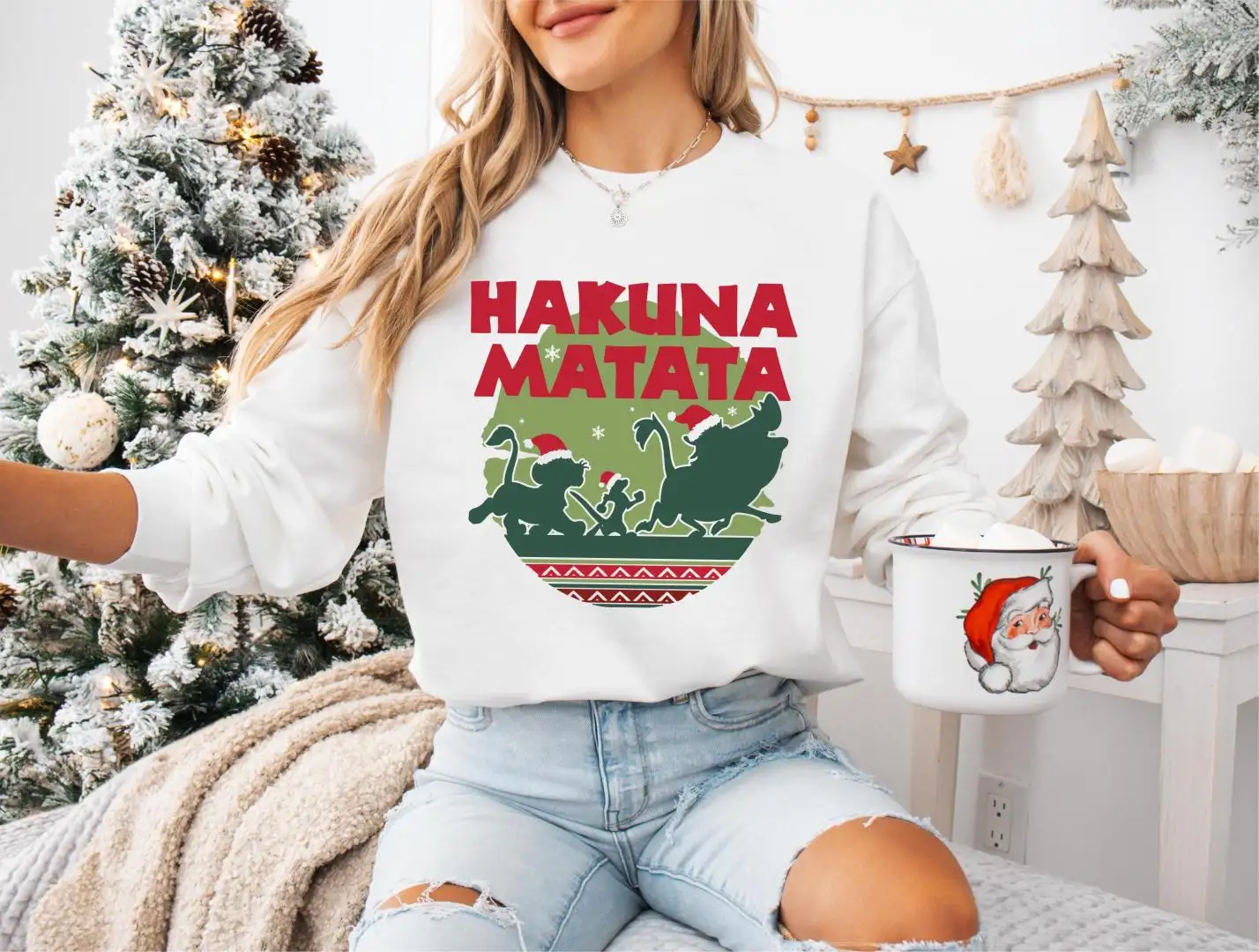 Review Christmas Hakuna Matata Sweatshirt, Disney Lion King Christmas Tee, Disney Hakuna Matata Xmas Shirt, Mickey's Very Merry Xmas Party T-shirt