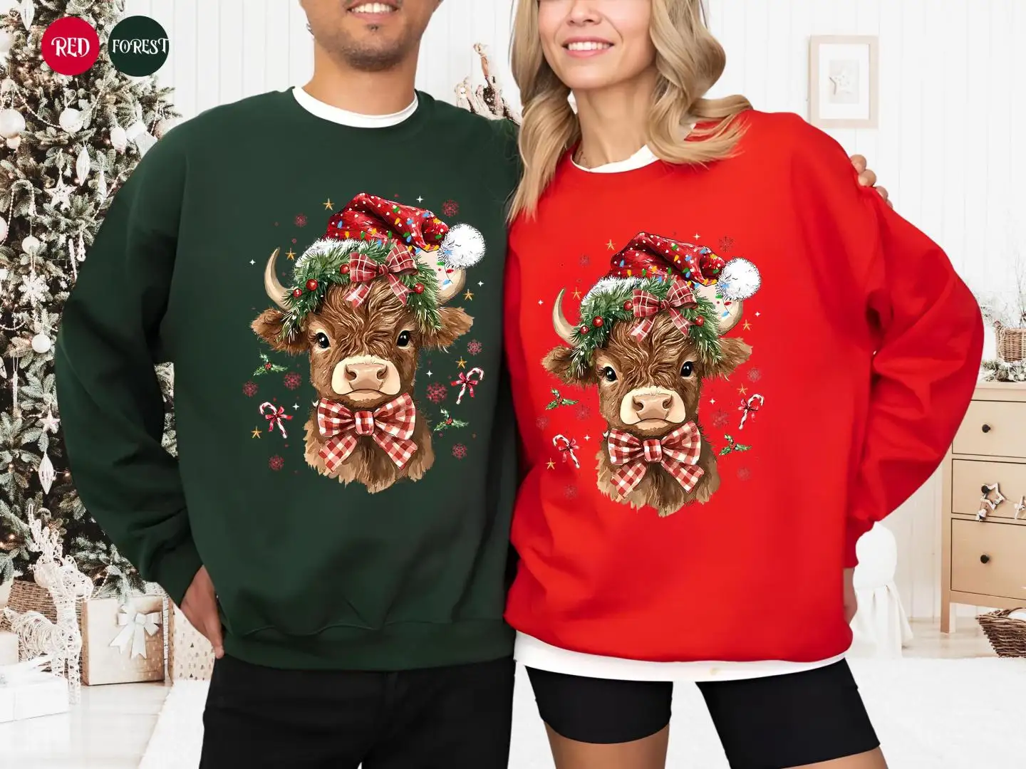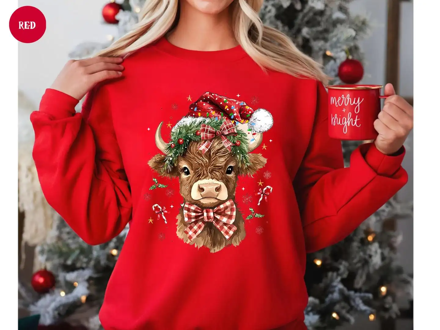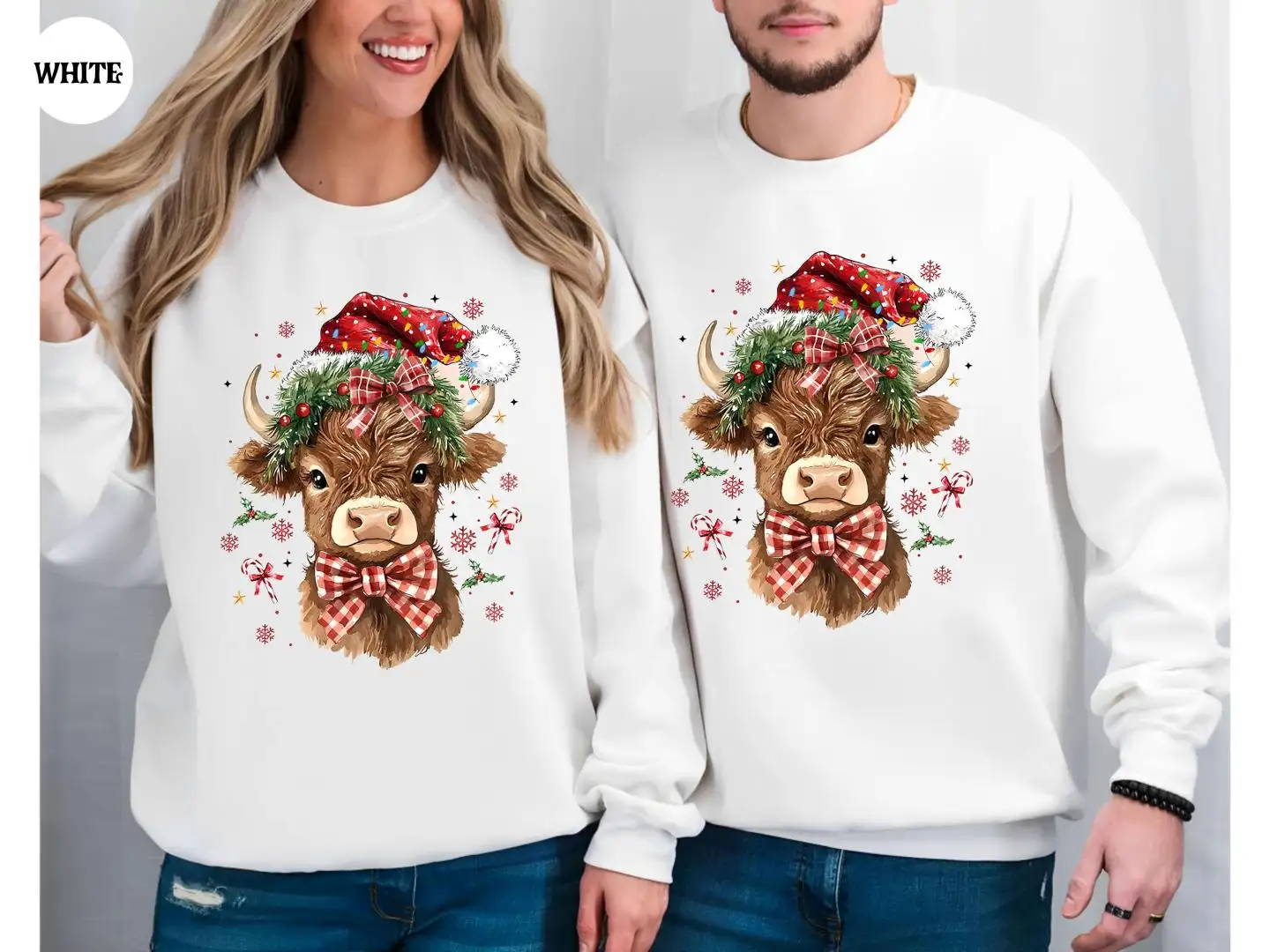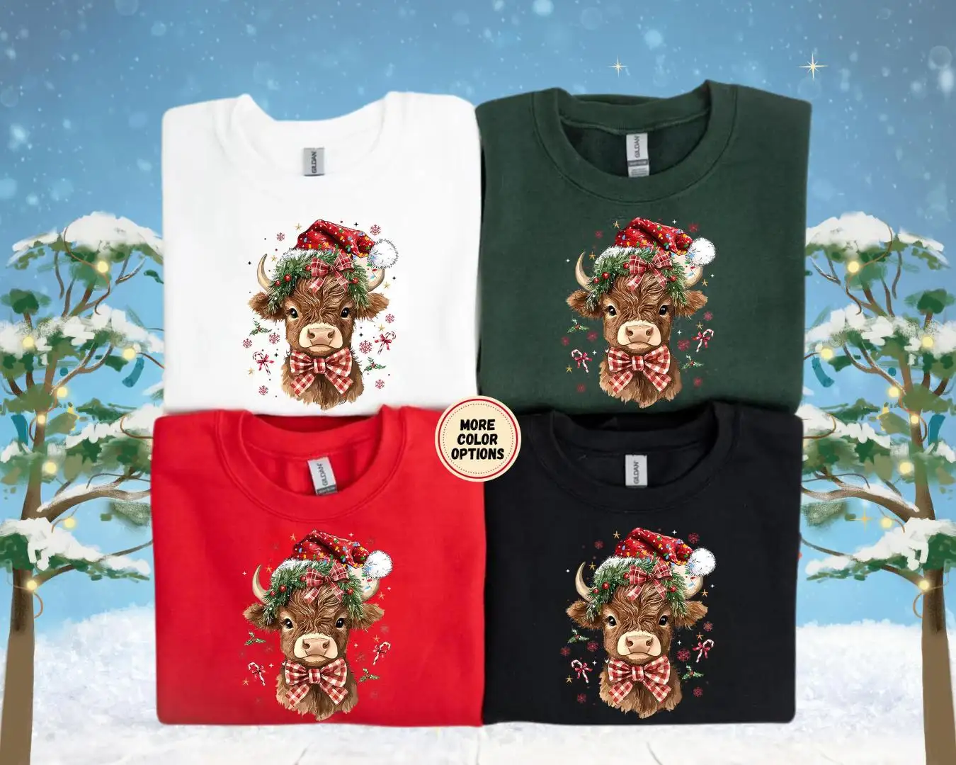 Review Christmas Highland Cow Sweatshirt, Farmhouse Christmas Gift, Cows Christmas Hoodie, Western Cow Sweater, Farm Christmas Sweatshirt, Farming
