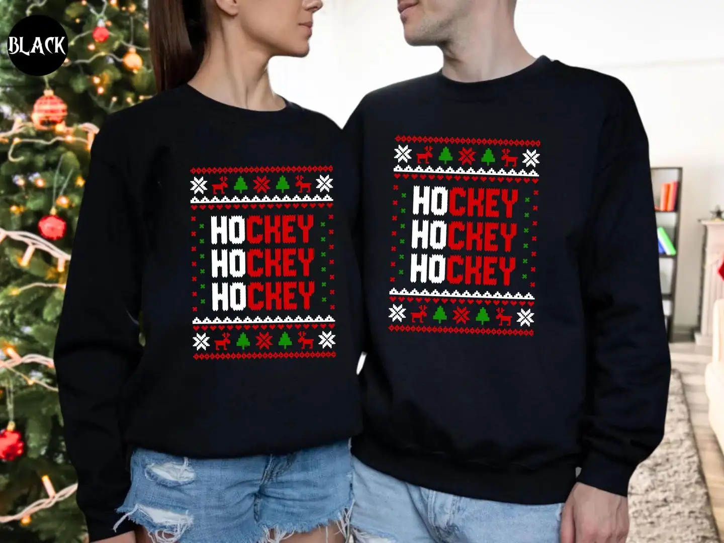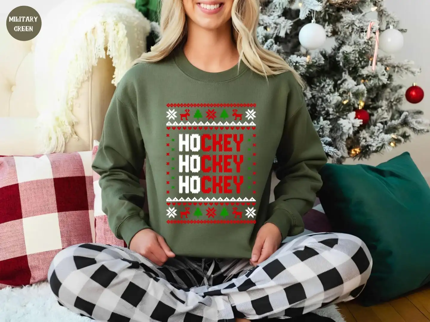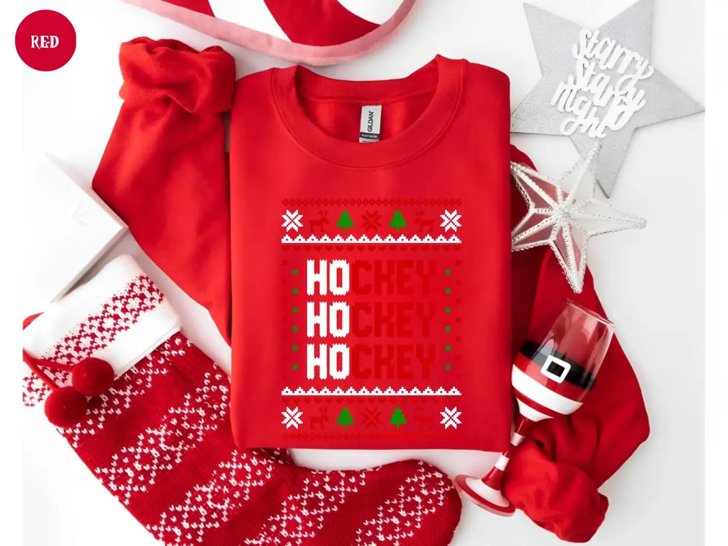 Review Christmas Hockey Sweatshirt, Xmas Hockey Gift, Cozy Hockey Hoodie, Holiday Hockey Apparel, Christmas Sports Hoodie, Winter Hockey Sweatshirt