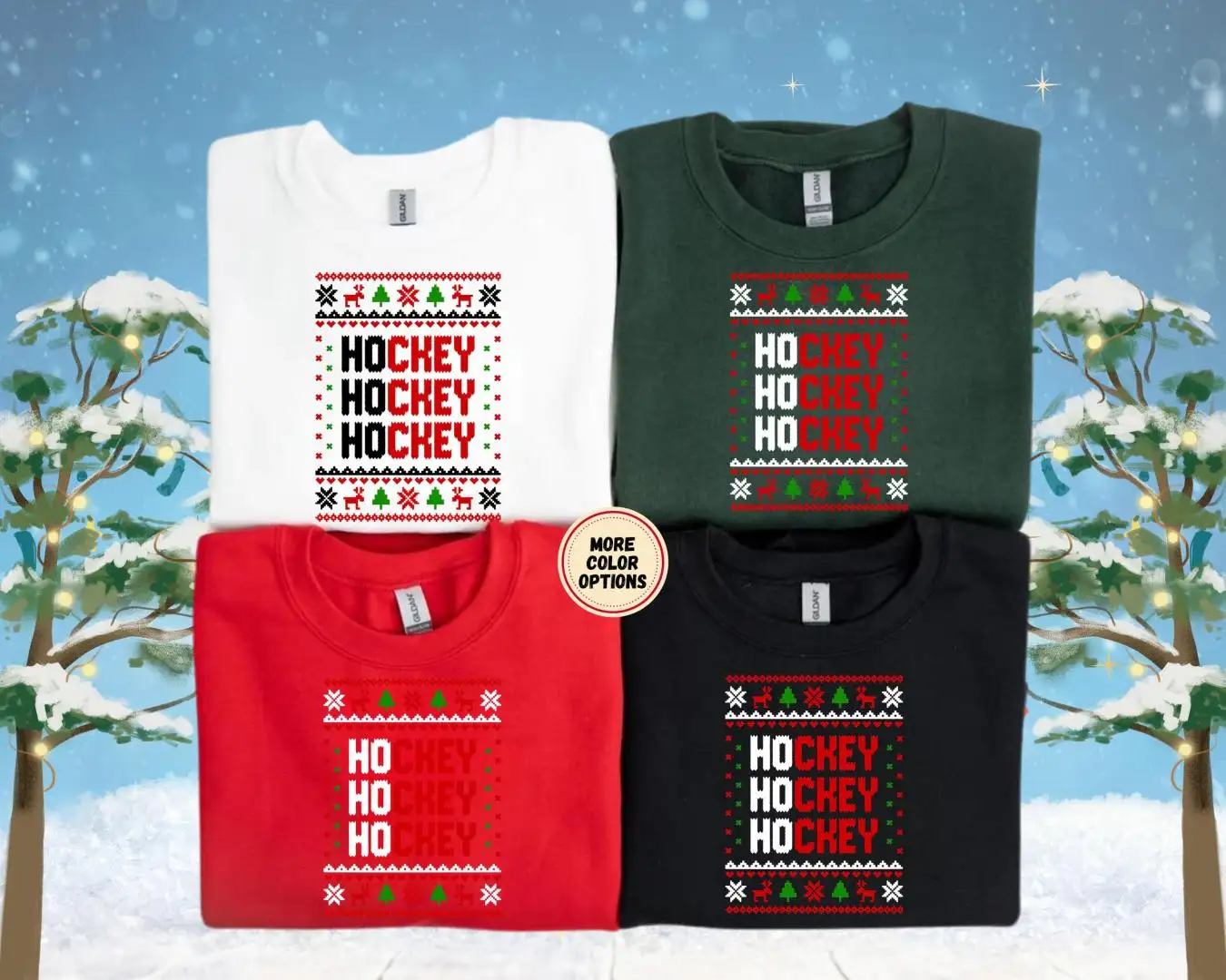 Christmas Hockey Sweatshirt, Xmas Hockey Gift, Cozy Hockey Hoodie, Holiday Hockey Apparel, Christmas Sports Hoodie, Winter Hockey Sweatshirt