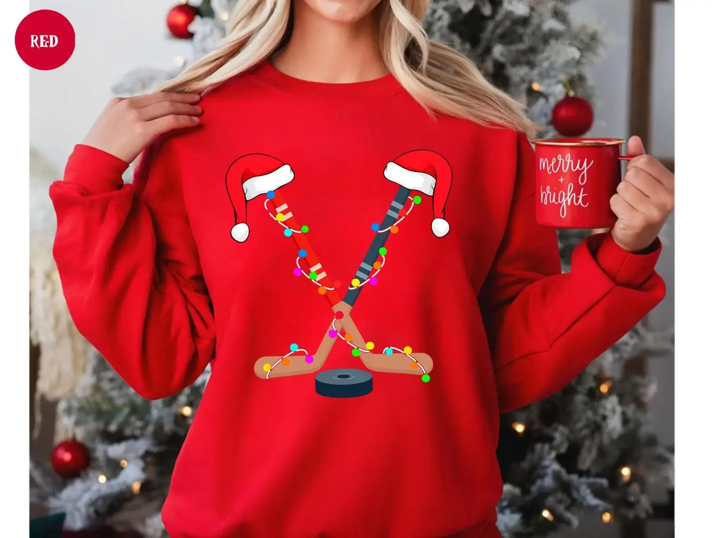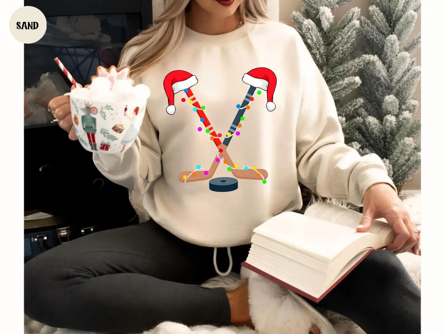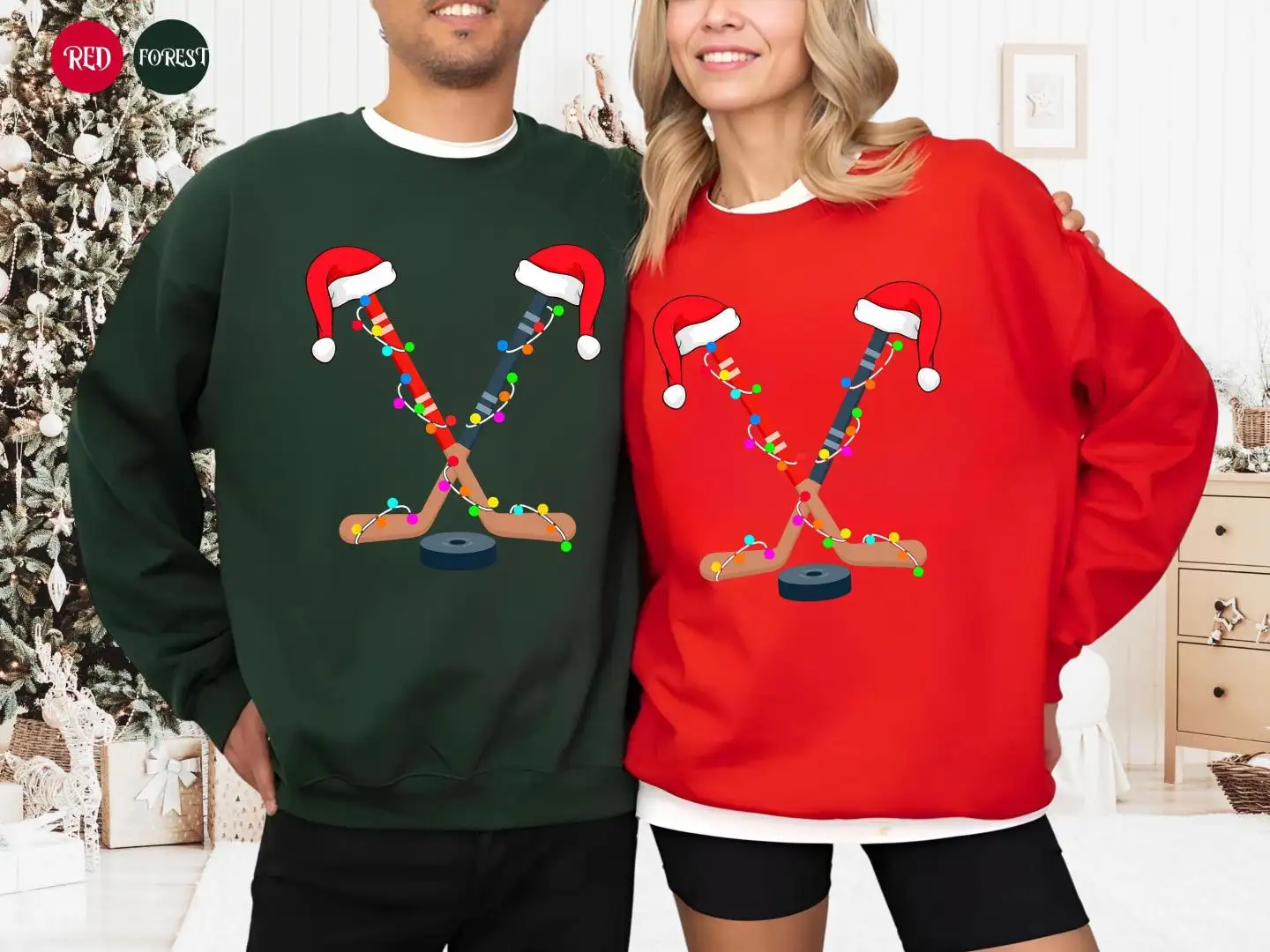 Christmas Ice Hockey Sweatshirt, Hockey Lover, Hockey Team Gifts, Xmas Sports Gift, Holiday Sweaters, Hockey Mom Sweatshirt, Ice Hockey Gifts