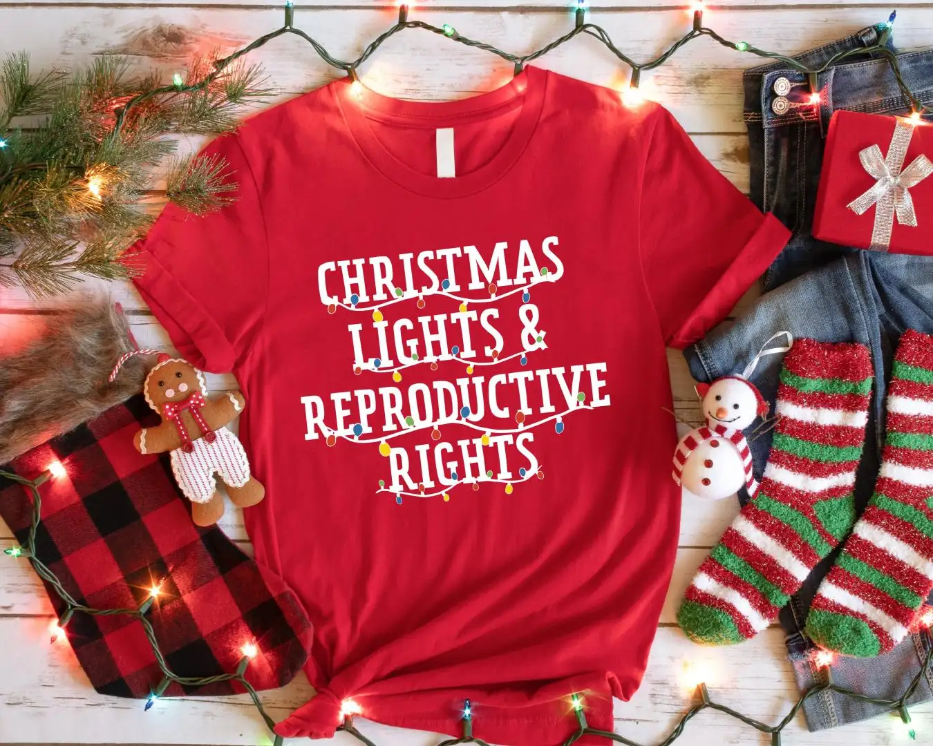 Christmas Lights and Reproductive Rights Christmas Shirt, Pro-choice Xmas Holiday Tee, Abortion Rights Sweatshirt, Feminist Christmas Shirt