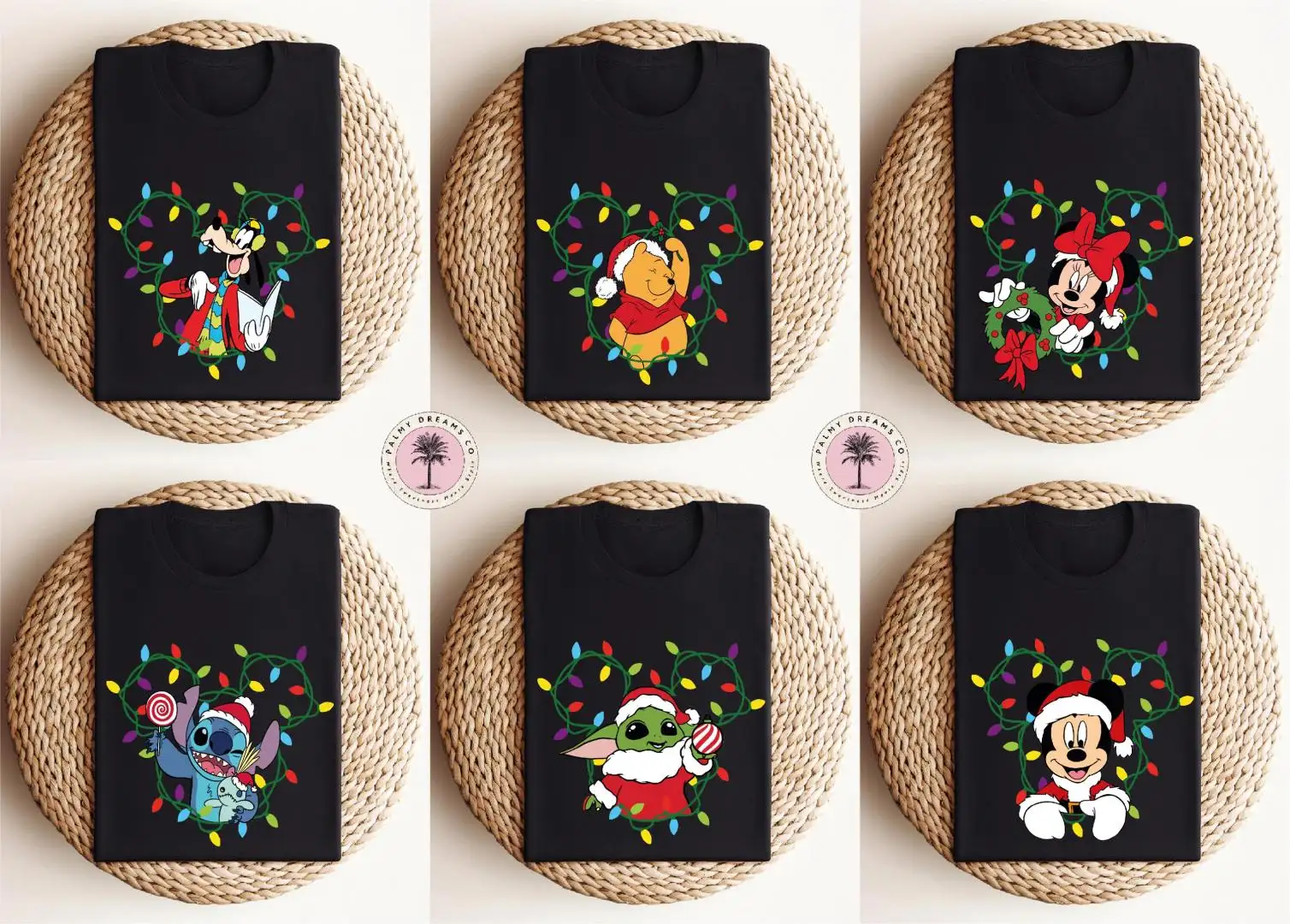 Christmas Lights Disney Shirts, Christmas Matching Shirts, Stitch, Christmas Disney Characters Shirts, Winnie, Custom Christmas Shirts, Yoda