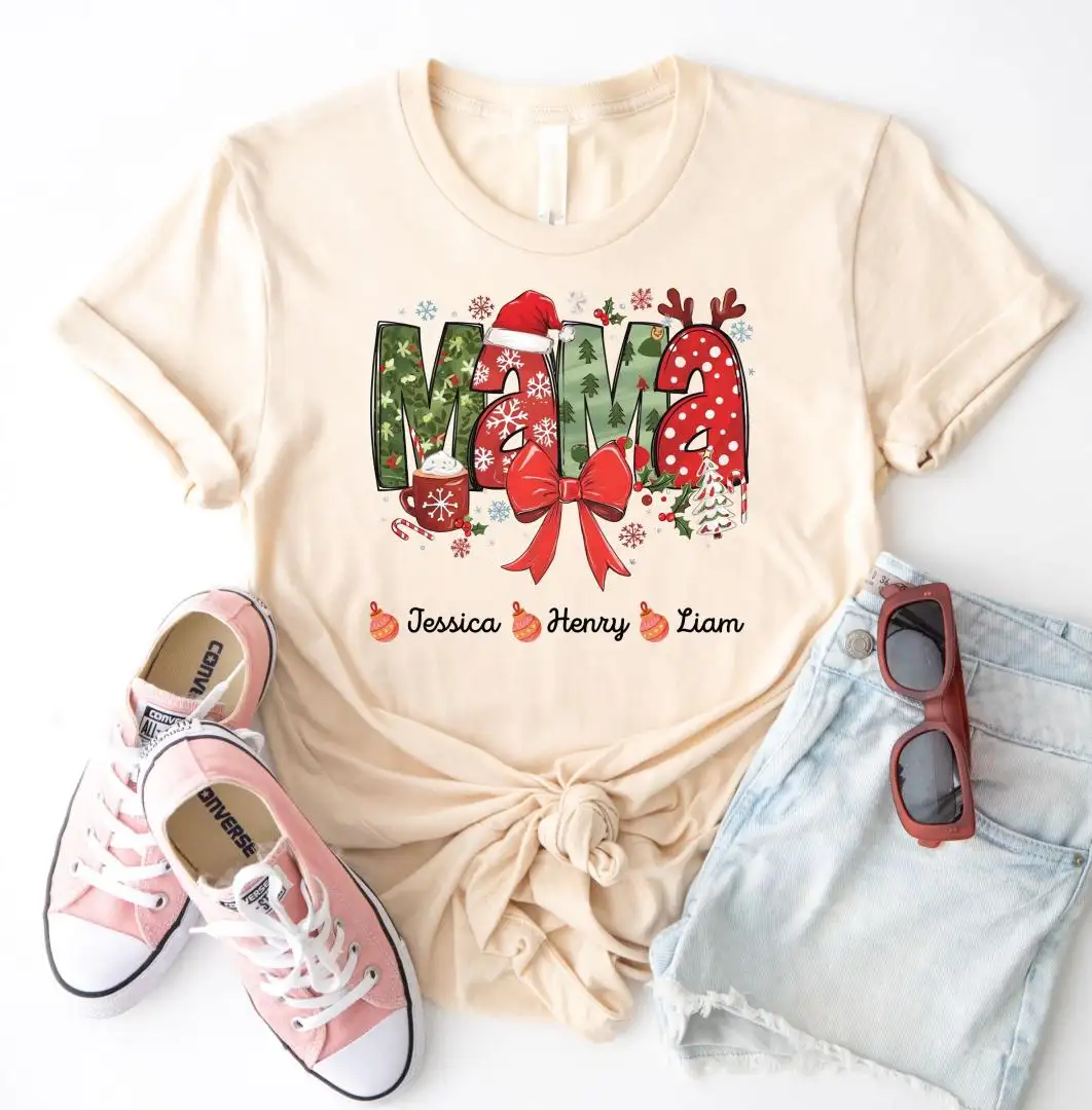 Review Christmas Mama Kids Name Shirt, Christmas Mom Gift, Coquette Bow Christmas Mama, Christmas Mama Claus Sweater., Custom Christmas Mama Shirt