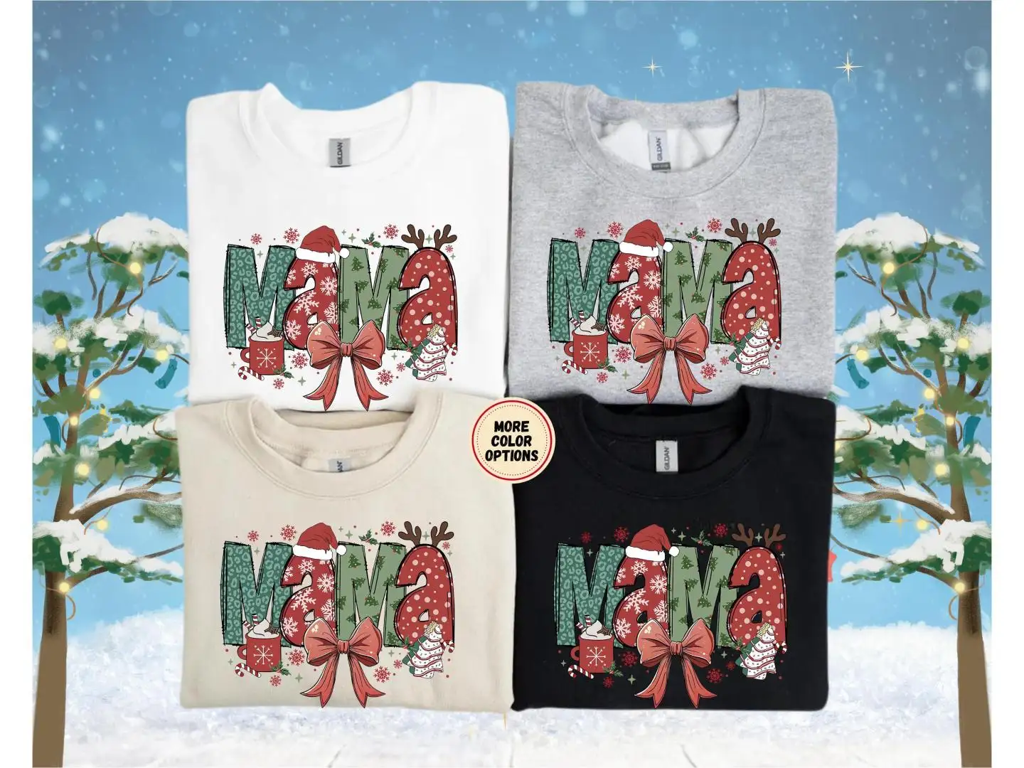 Review Christmas Mama Sweatshirt, Holiday Mama Tee, Mama Christmas Coquette Bow Shirt, Mama Claus Sweater, Christmas Mama Shirt, Christmas Mom Gift