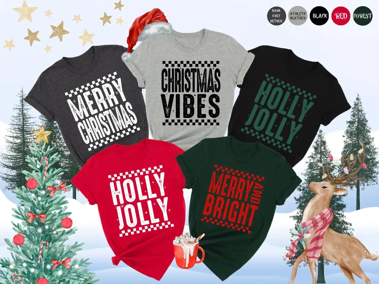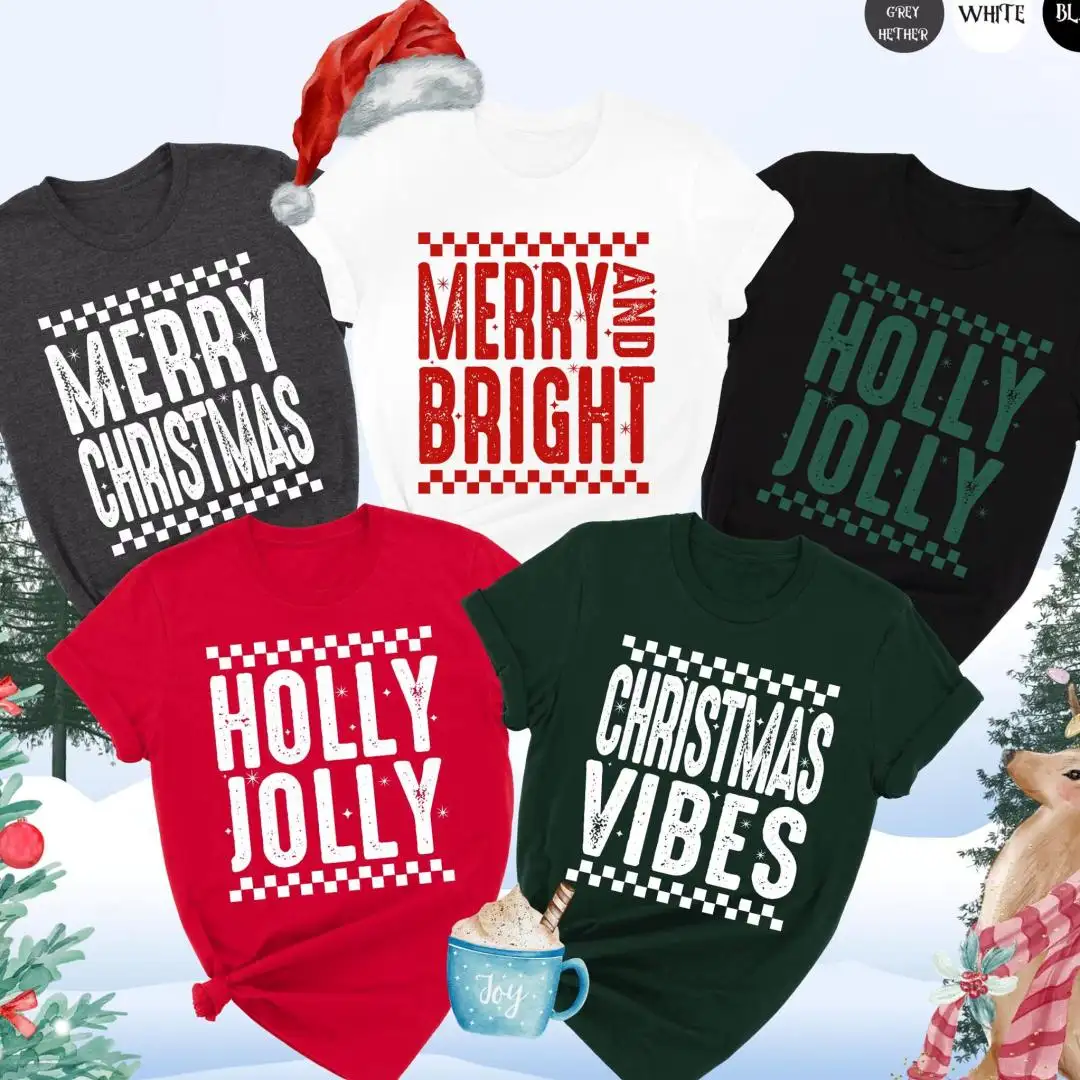 Review Christmas Matching Shirt, Merry Christmas Tee, Xmas Family Shirt, Checker Print Holiday Shirt, Custom Christmas Shirt, Group Christmas Shirt