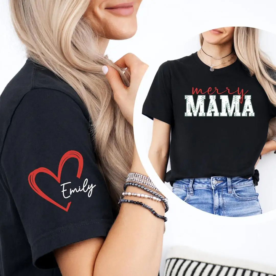 Review Christmas Merry Mama Mini Shirt, Personalized Mama Hoodie, Mama Mini Matching Crewneck, Mom Daughter Holiday Sweatshirt, Kids Name XMAS Tee