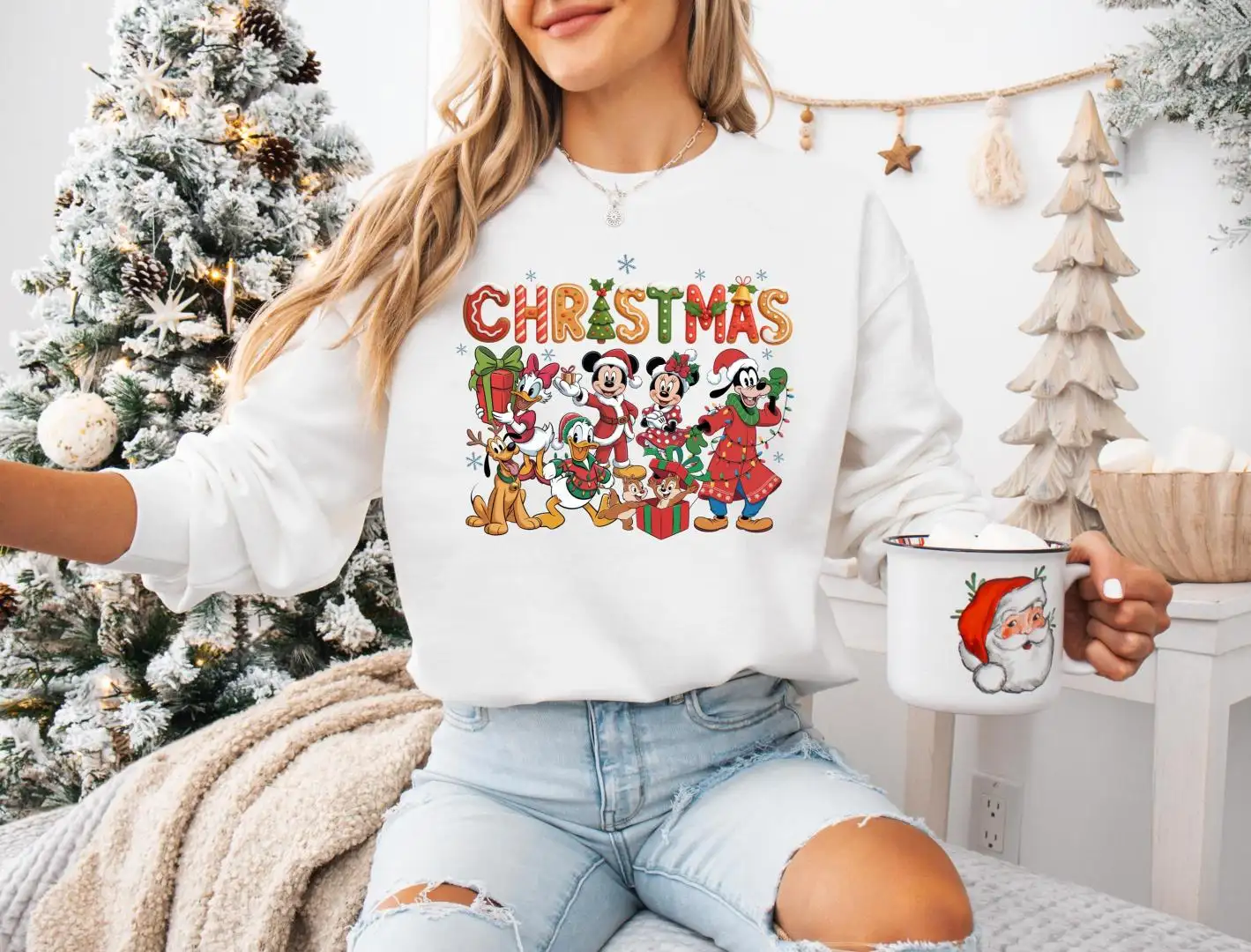 Review Christmas Mickey Friends Shirts, Disney Holiday Sweatshirt, Christmas Family Trip Tees, Disneyland Christmas Party Hoodie, Santa Mickey Tee